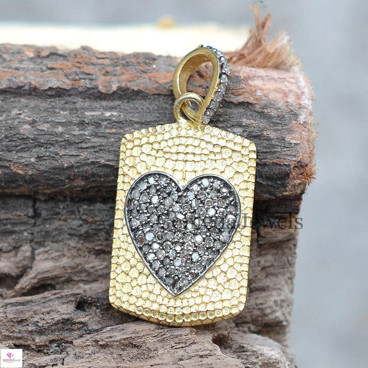 925 Silver Gold Plated Pendant Jewelry, Genuine Pave Diamond Heart Pendant, Handmade Diamond Necklace Jewelry, Wedding Gift, 16" Link Chain