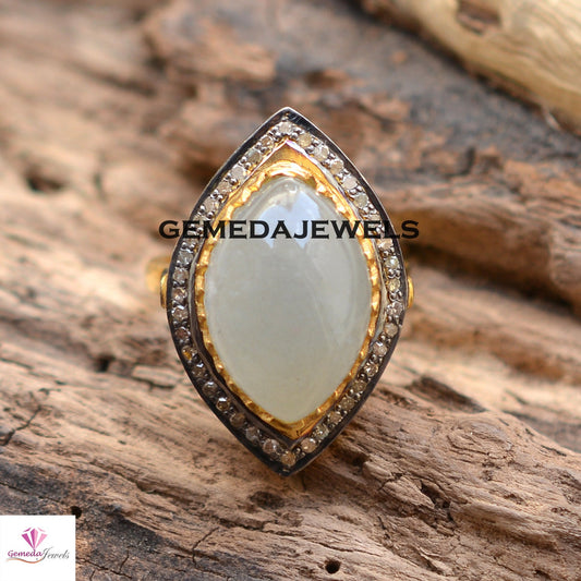 Aqua Chalcedony Gemstone Ring, Pave Diamond Jewelry, 925 Sterling Silver Ring, 14k Gold Plated Ring, Gemstone Silver Jewelry, Gift For Her