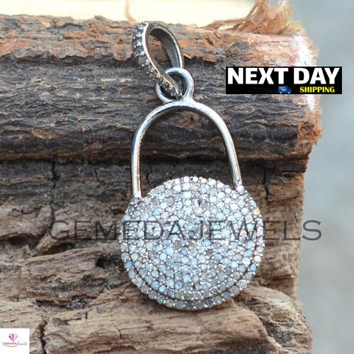 1.25cts Pave Diamond Pendant, Sterling Silver Jewelry, Diamond Lock Jewelry, Diamond Silver Padlock Necklace, Birthday Gift, Size 39X18 MM