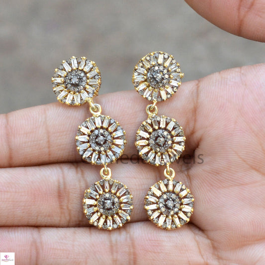 2.95cts Pave Diamond Earring, Sterling Silver Jewelry, 14k Gold Earrings, Diamond Starburst Earrings, Pave Diamond Jewelry, Christmas Gift