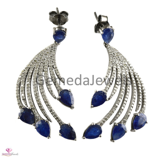 1.96 CTS Real Pave Diamond Earrings, Kyanite Gemstone Jewelry, 925 Silver Dangle Earring, Designer Diamond Jewelry, Oxidized Silver Jewelry