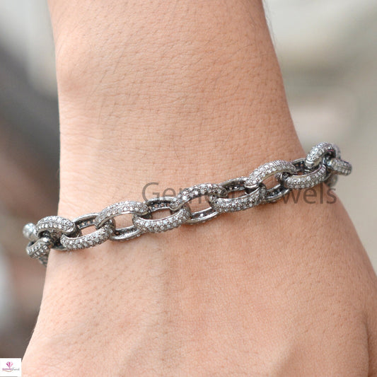4.75cts Pave Diamond Bracelet, 925 Silver Jewelry, Silver Link Bracelet, Diamond Silver Bracelet, Unisex Bracelet Jewelry, Mothers Day Gifts