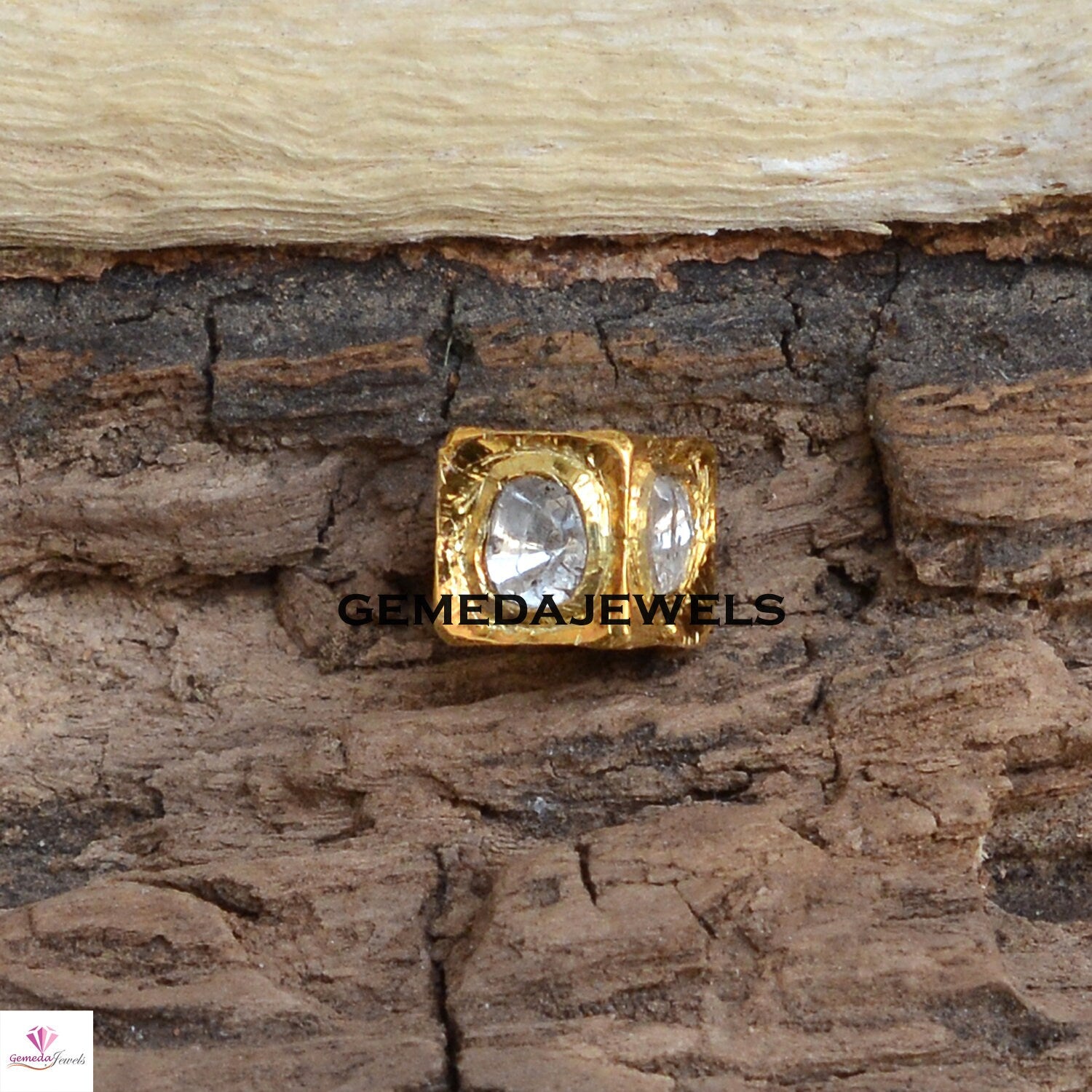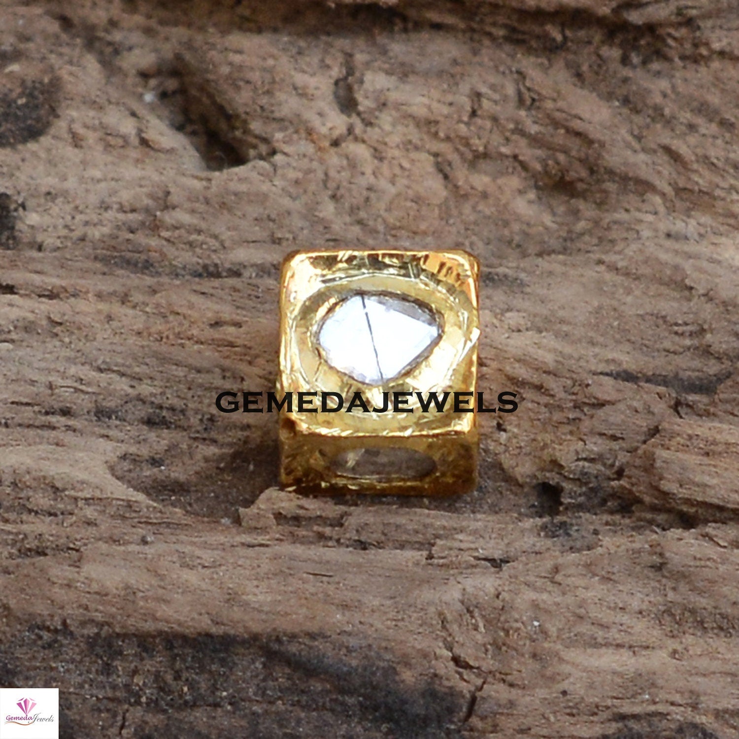 8 MM Polki Diamond Beads, Diamond Square Beads, 925 Silver Jewelry, Gold Plated Beads, Diamond Finding Jewelry, Jewelry Making Beads, Gifts
