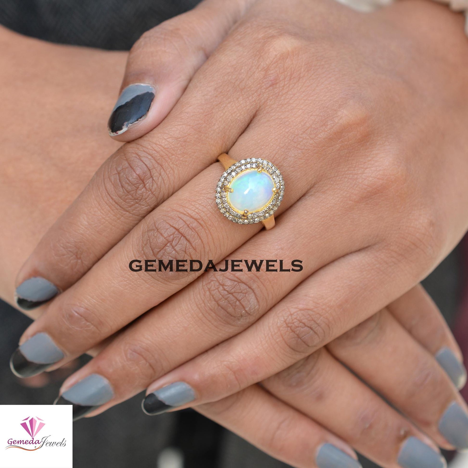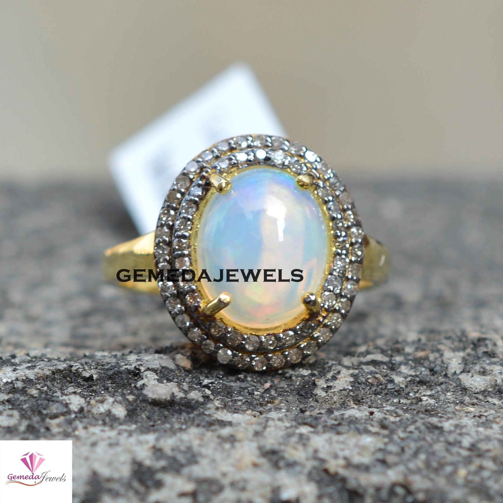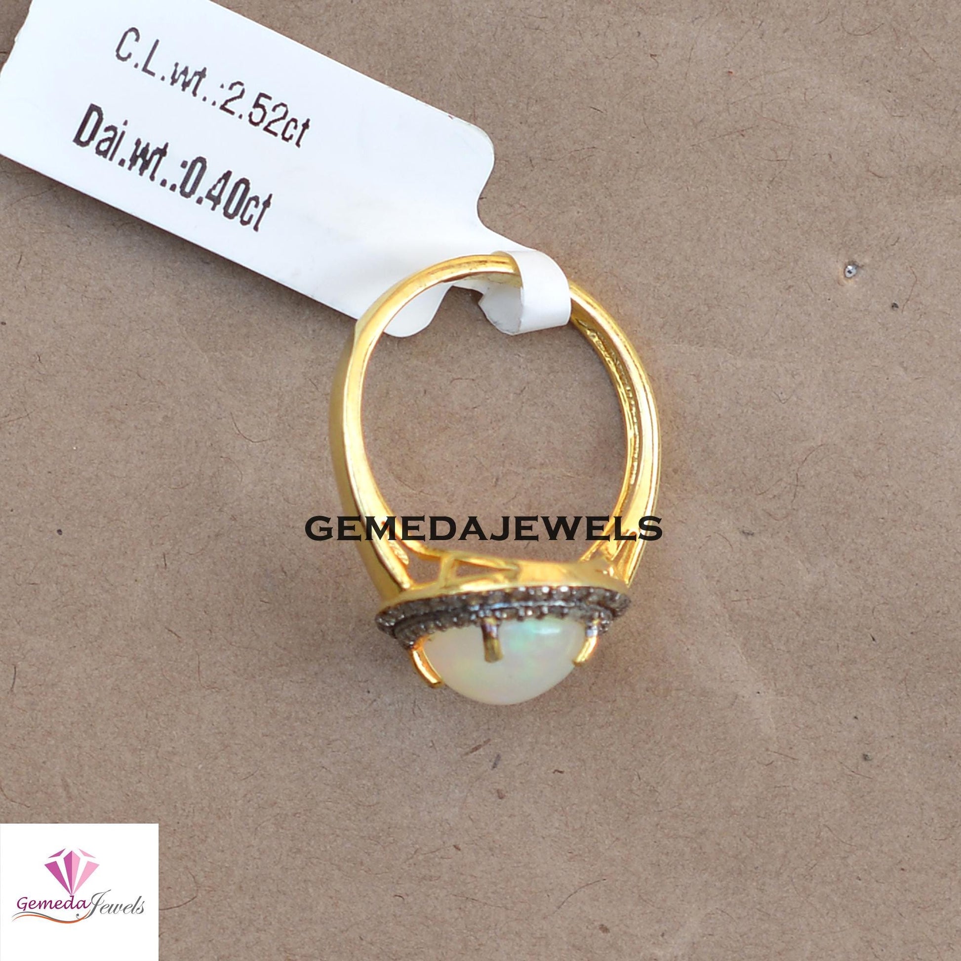 925 Silver Jewelry Genuine Opal Gemstone Ring, Pave Diamond Ring Yellow Gold Vermeil Jewelry, Gemstone Diamond Jewelry, Valentine's Gift