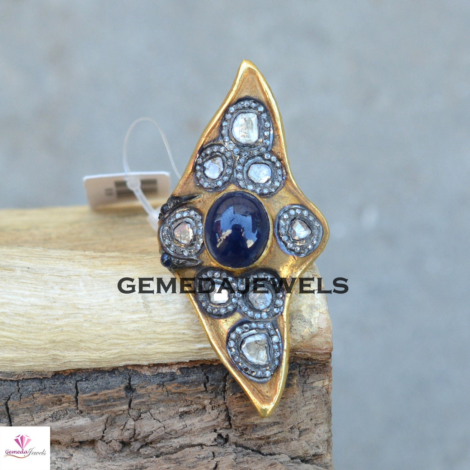 Amethyst Silver Ring, Victorian Polki Ring, 925 Silver Jewelry, Polki Diamond Antique Ring, Pave Diamond Jewelry, Gemstone Silver Jewelry