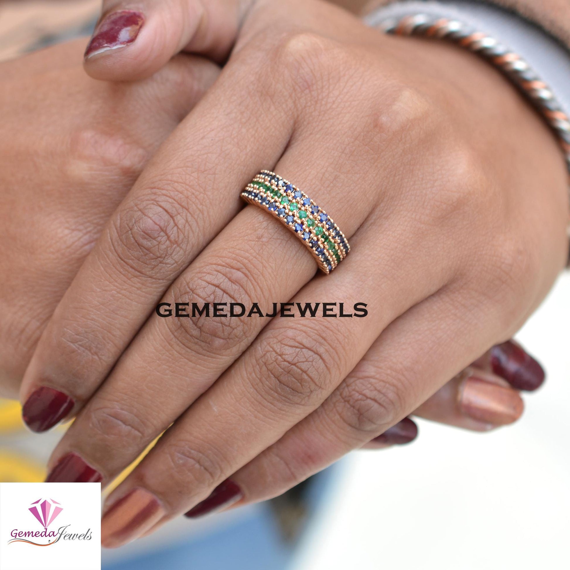 Charming Blue Sapphire Ring, Emerald Gemstone Jewelry, Gold Vermeil Ring Jewelry, 925 Silver Ring, Gemstone Jewellery, Valentine's Day Gift