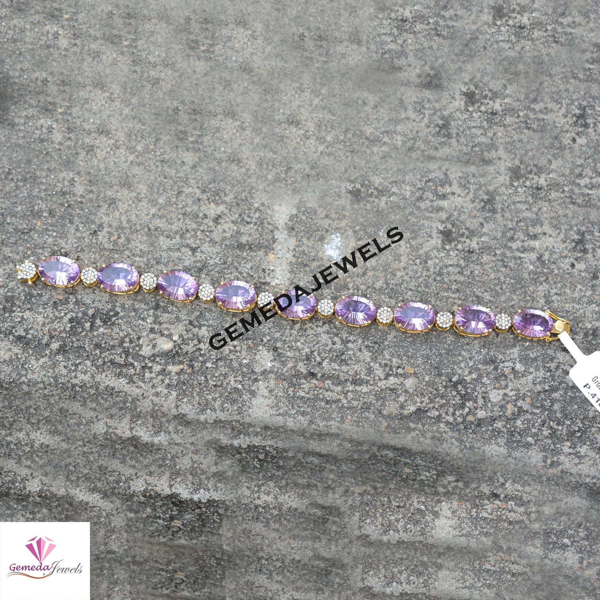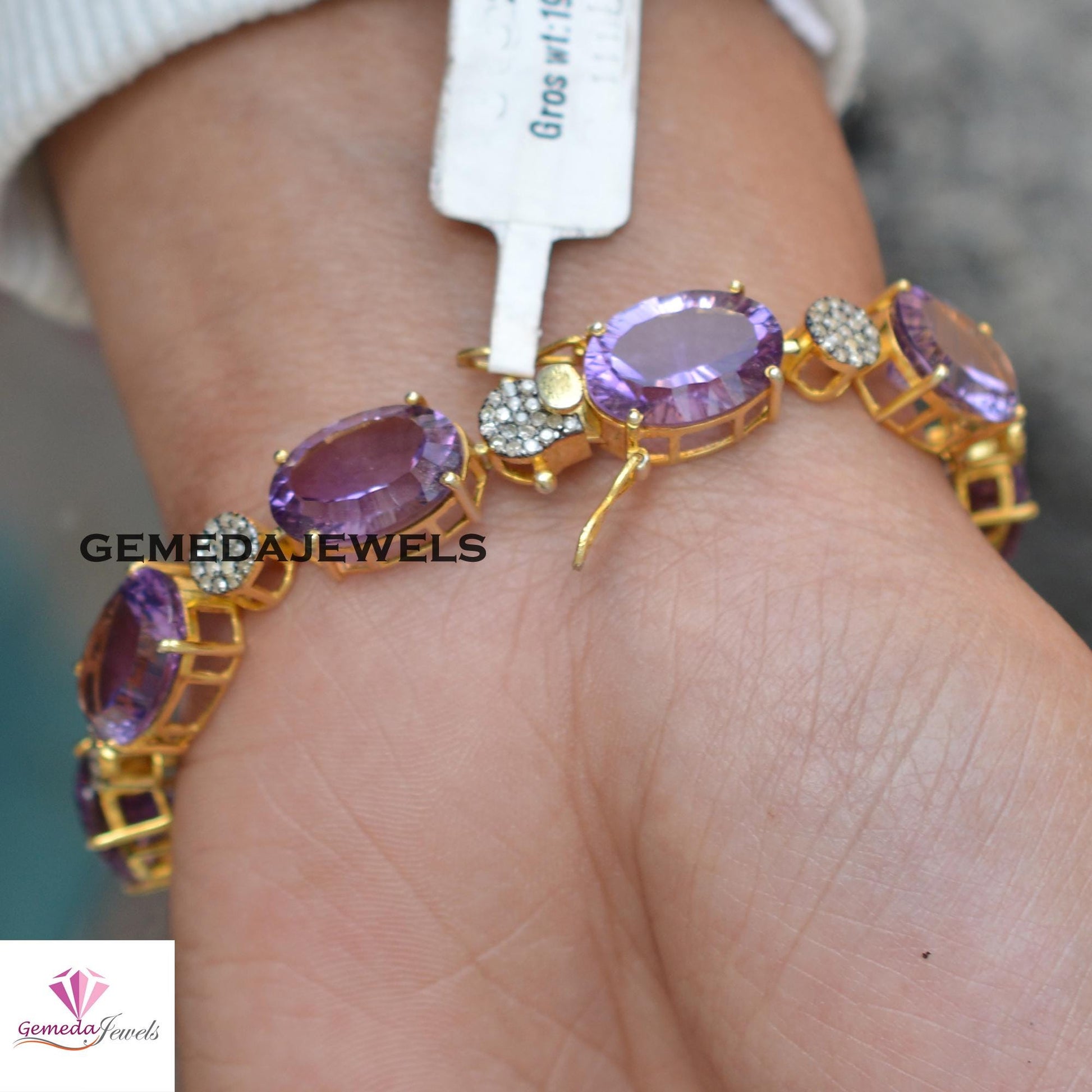 Charming Purple Amethyst Gemstone Bracelet, Pave Diamond Bracelet, 14k Gold Vermeil Jewelry, Solid 925 Silver Jewelry, Valentine's Day Gift