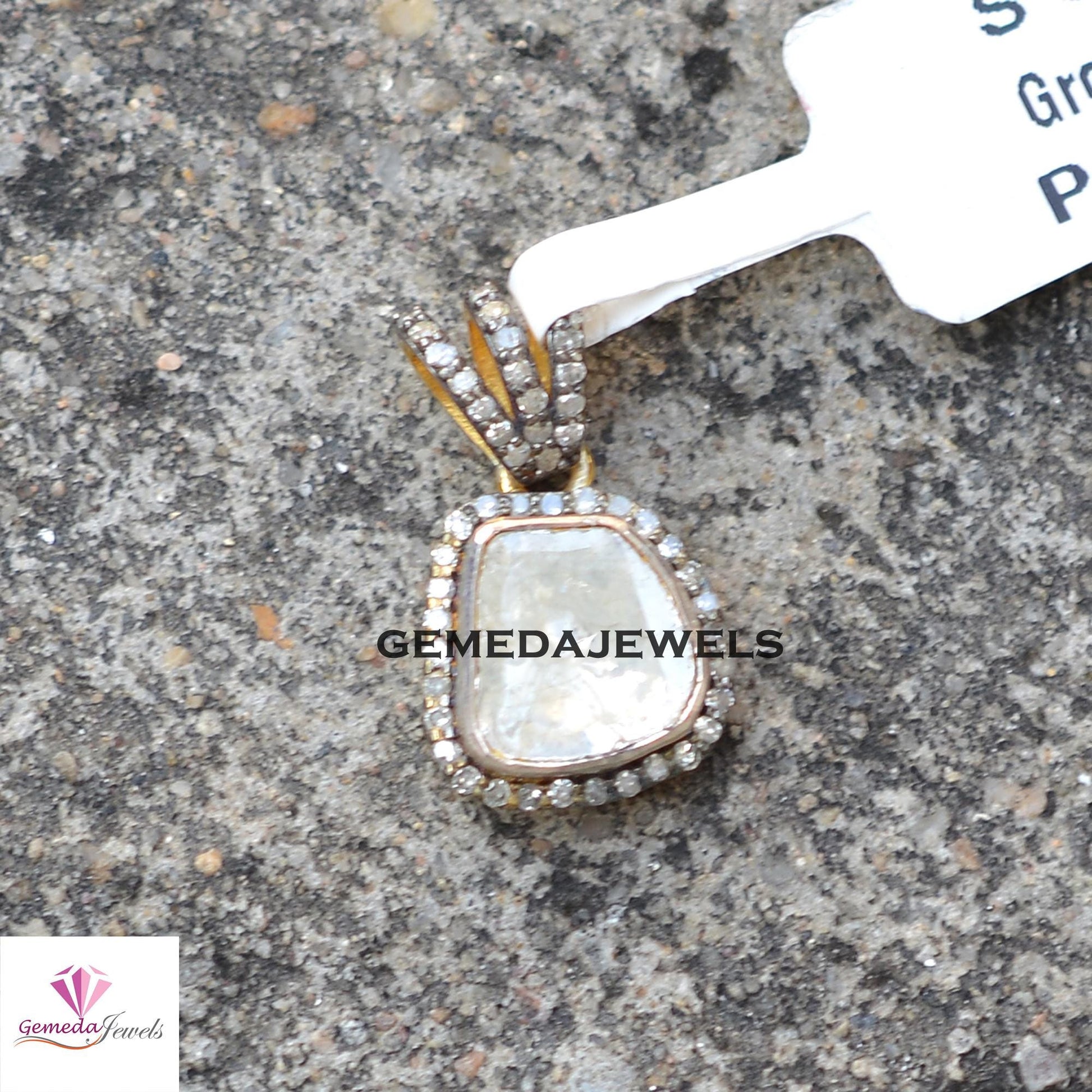 Classic Polki Diamond Pendant, 16" Link Chain Necklace, 925 Silver Jewelry, Gold Vermeil Pendant, Pave Diamond Pendant, Valentine's Day Gift