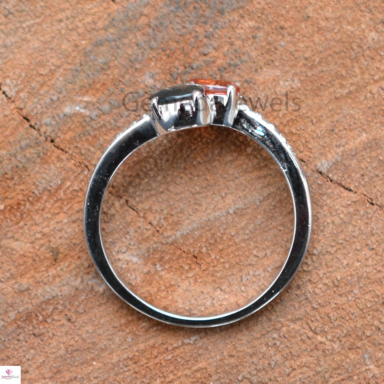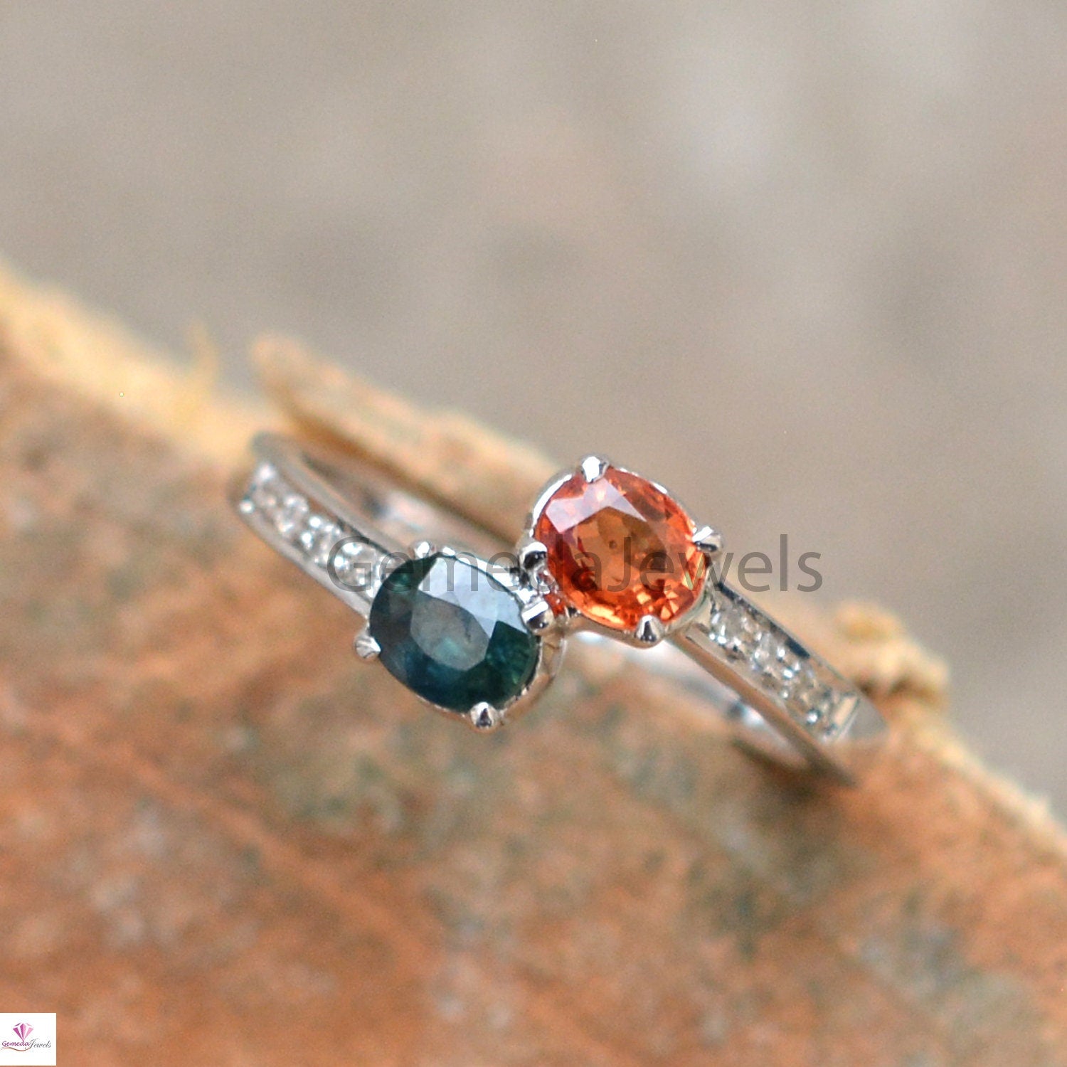 Genuine Blue Yellow Sapphire Ring, Oval Shape Faceted Gemstone Ring, Pave Diamond Silver Ring, Statement Ring, Valentine Day Gift For her