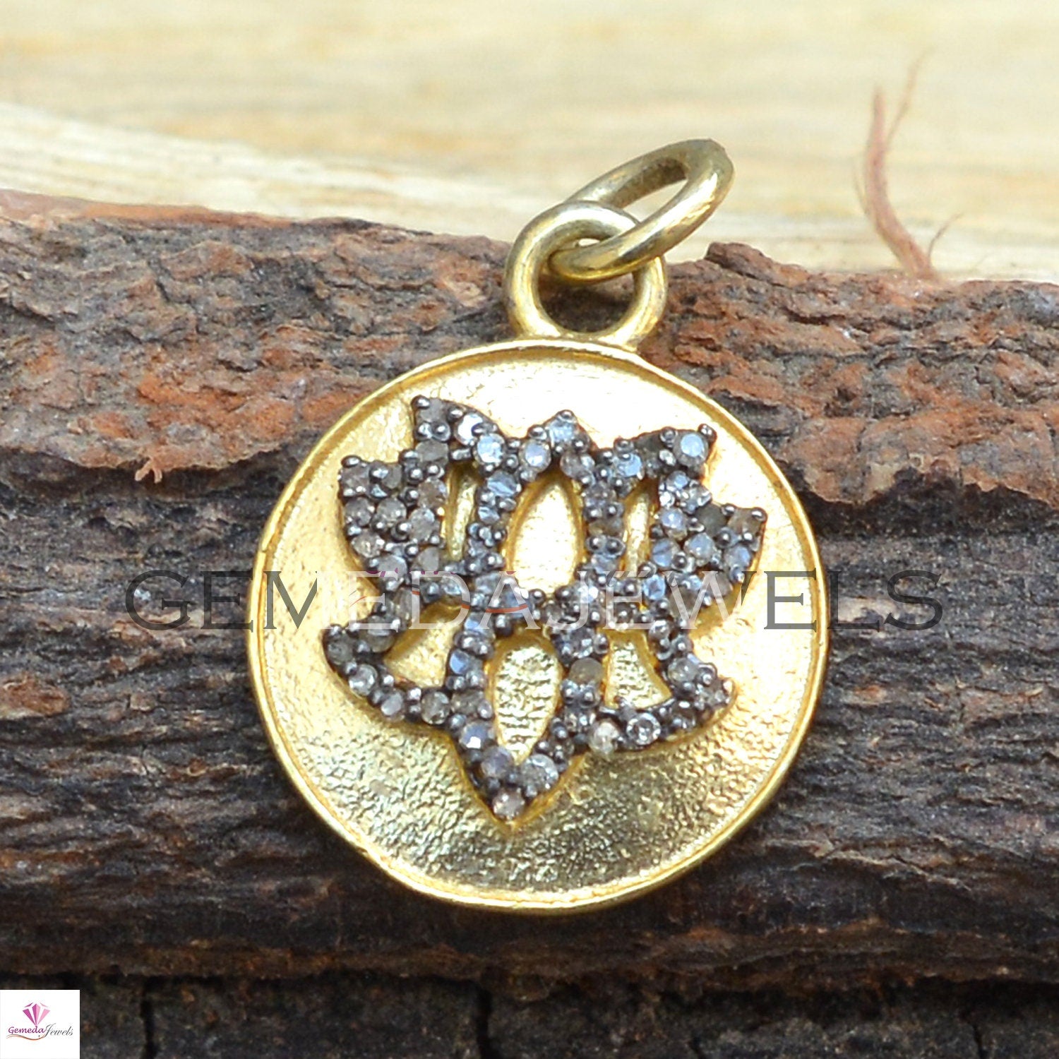 Gold Vermeil 925 Silver Pendant, Genuine Pave Diamond Pendant, Handmade Silver Necklace Jewelry, Diamond Charm Flower Pendant, Gift For Her Pendant