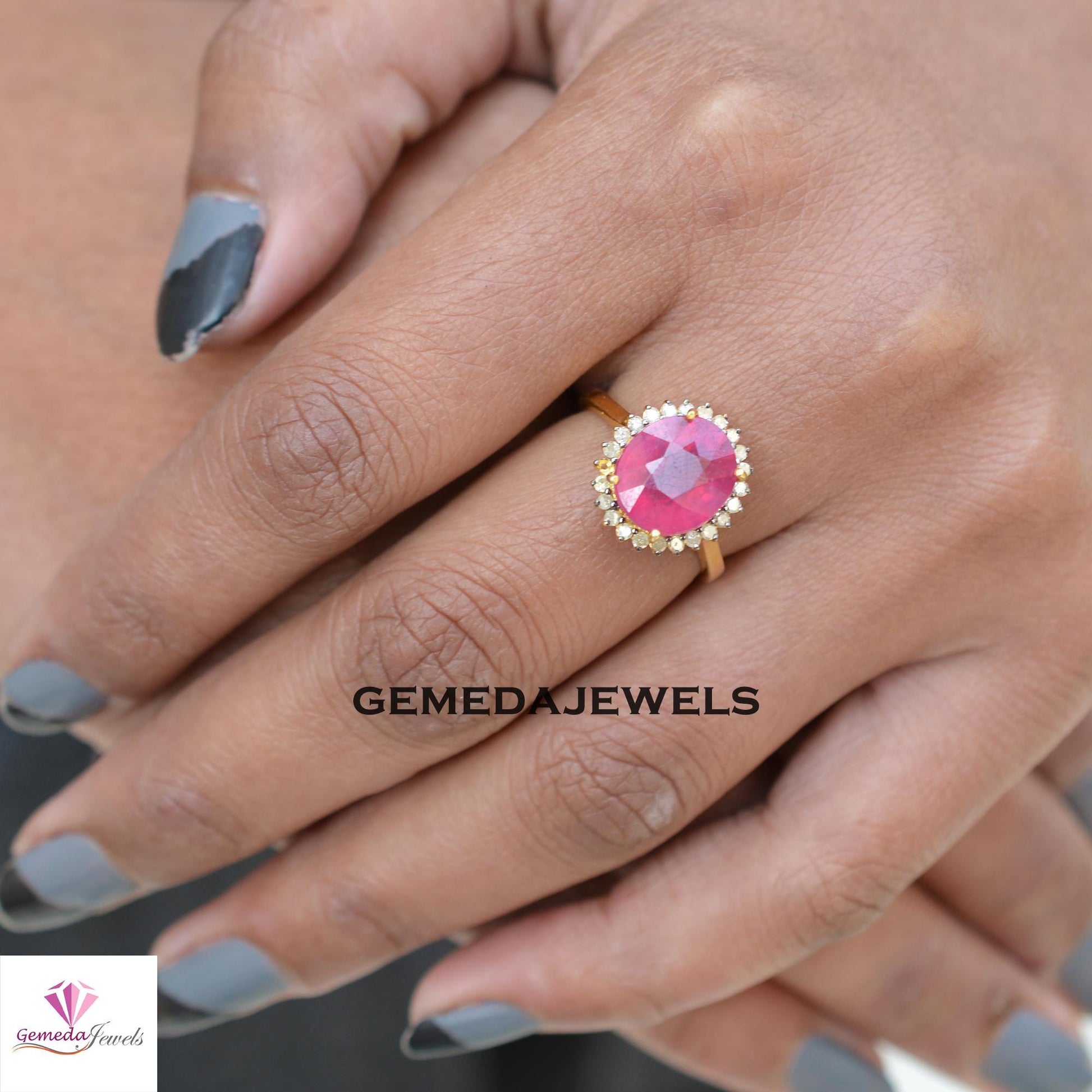 Gorgeous Real Ruby Gemstone Ring, Solid 925 Silver Jewelry, Pave Diamond Ring, 14k Gold Vermeil Jewelry, Gift For Her, Wedding Gift Jewelry