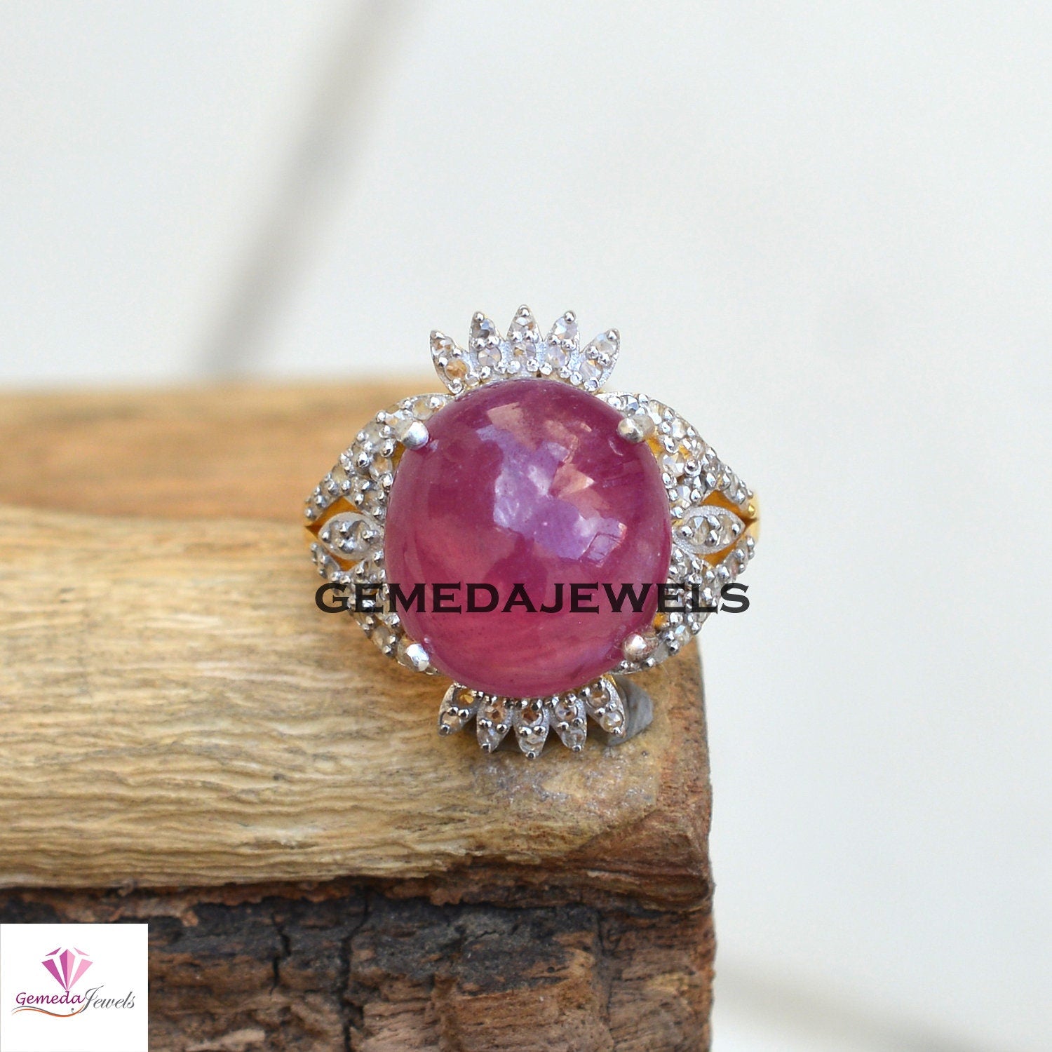 Gorgeous Red Ruby Gemstone Ring, Sterling Silver Ring, Pave Diamond Jewelry, Gemstone Ring Jewelry, 14k Gold Vermeil Jewelry, Gift For Her