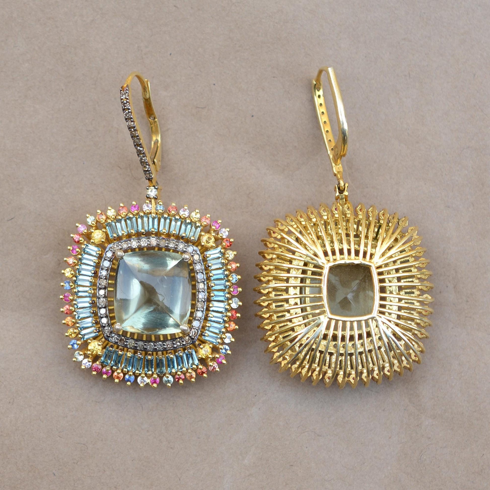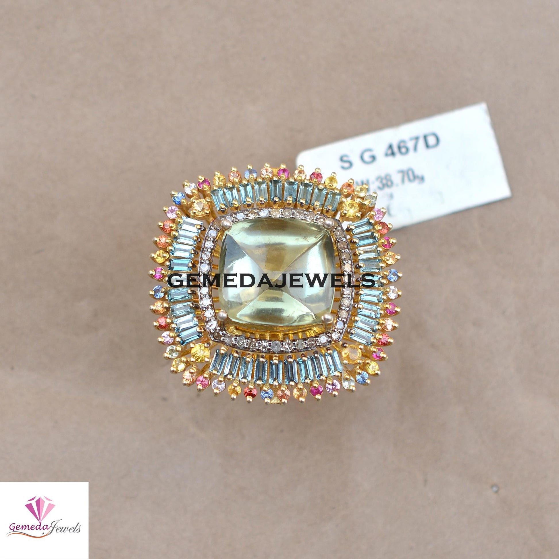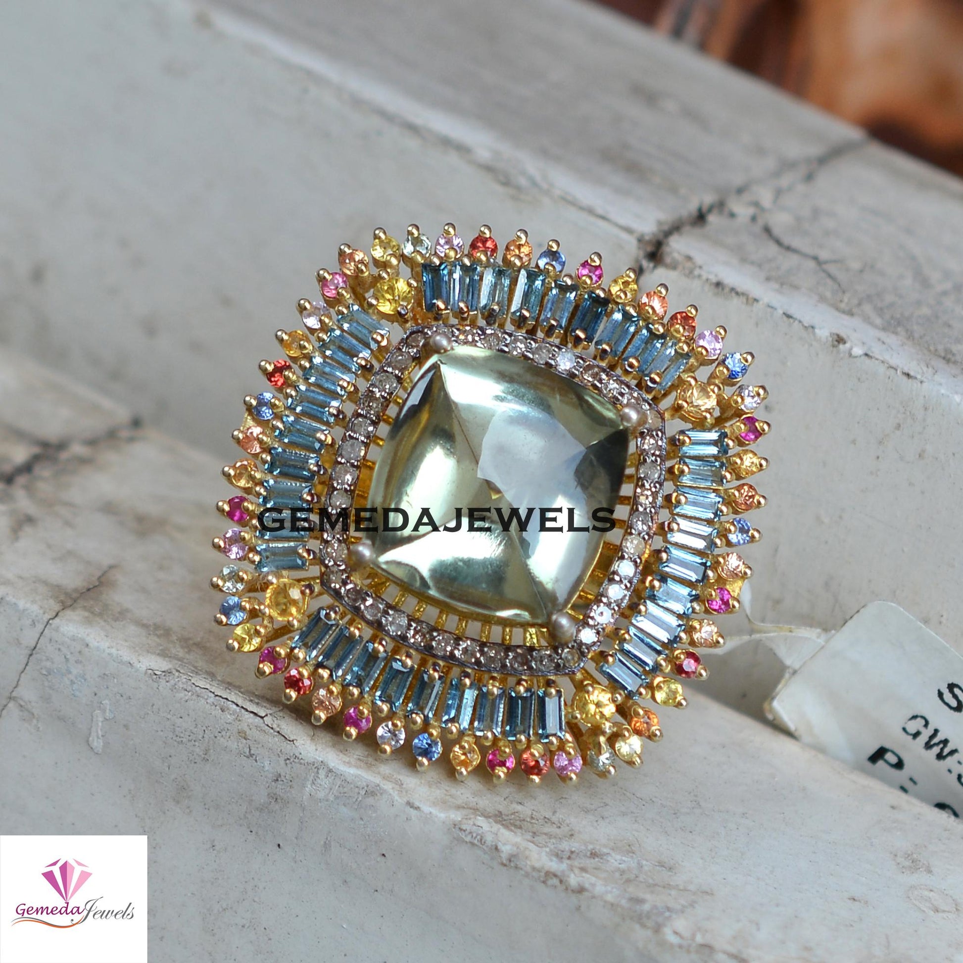 Multi Color Gemstone Jewelry Set, Green Gemstone Jewelry, Pave Diamond Jewelry Sets, 925 Silver Ring Earrings Set, 14k Gold Plated Jewelry
