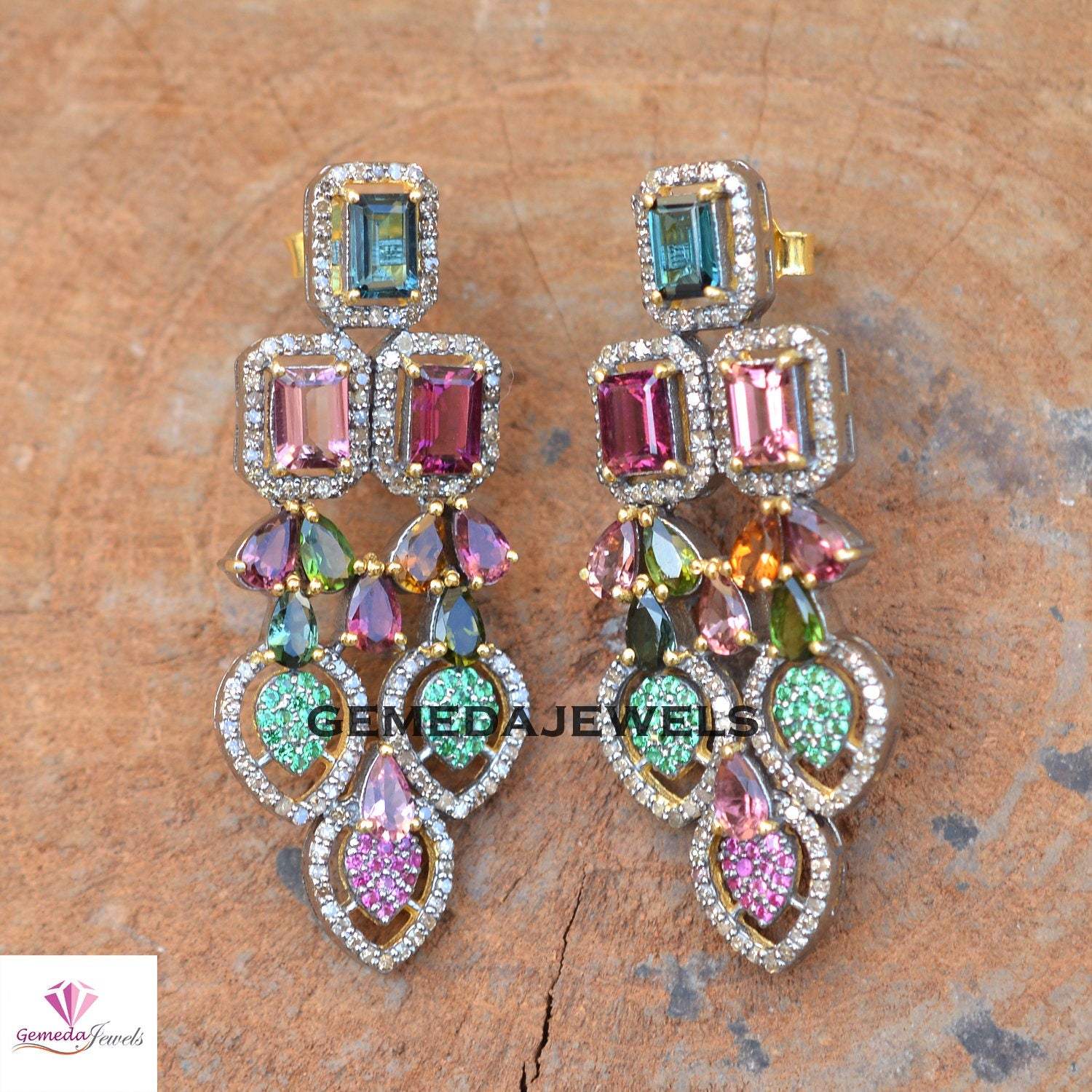 Charming Multi Tourmaline Earrings, Ruby Earrings, Emerald Diamond Silver Jewelry, 925 Silver Earrings, Gold Plated Earrings, Wedding Gift