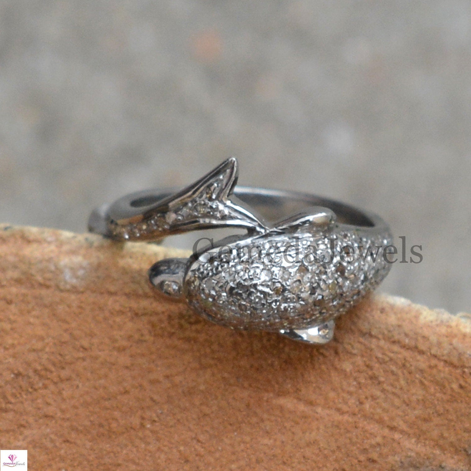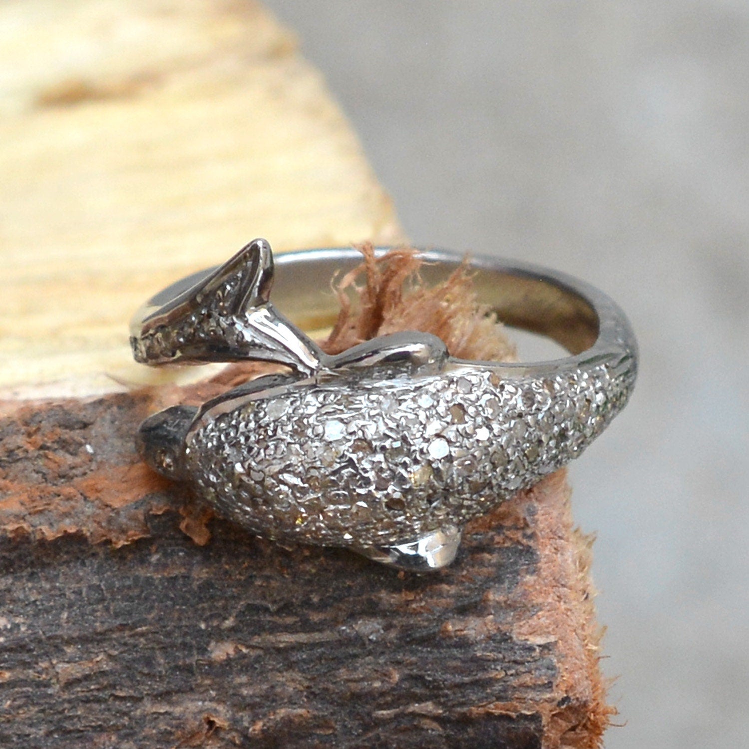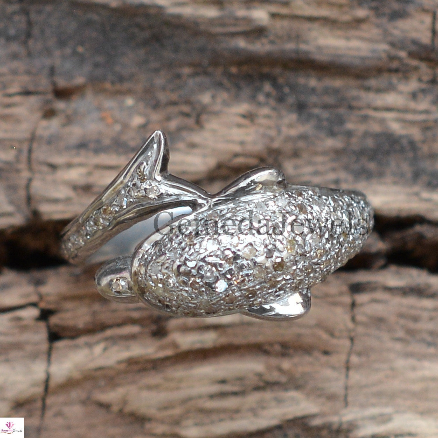 Natural Pave Diamond Dolphin Ring, Handmade Ring Jewelry, Pave Diamond Ring Jewelry, 925 Sterling Silver Ring, Animal Jewelry, Gift For her