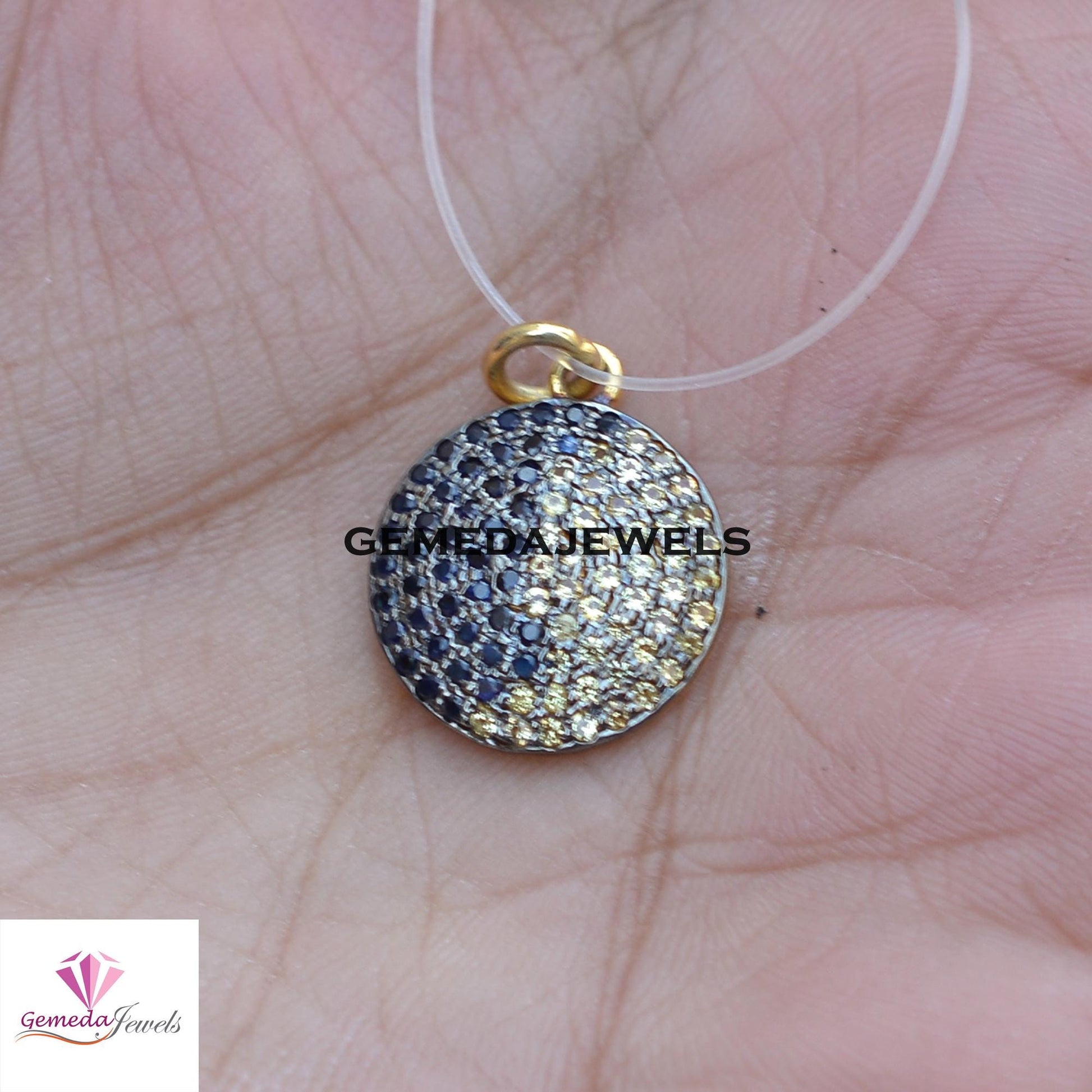 Natural Sapphire Pendant, Citrine Gemstone Pendant, 16" Silver Link Chain Necklace, Pave Diamond Jewelry, Disc Charm Pendant, Minimalist