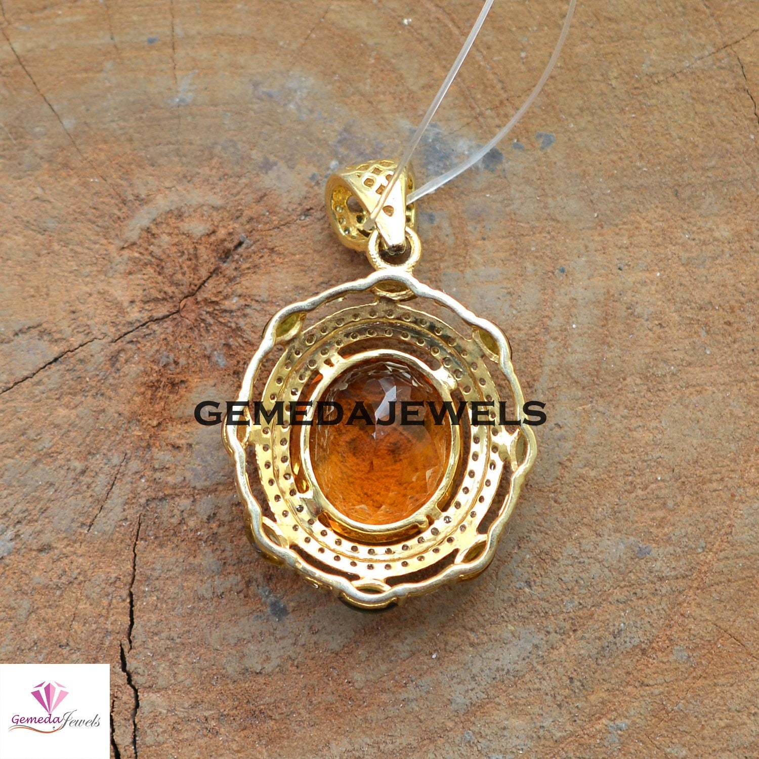 New Arrival Citrine Diamond Pendant, Pave Diamond Jewelry, Multi Gemstone Pendant, 925 Silver Jewelry, 14k Gold Plated Pendant, 16" Chain