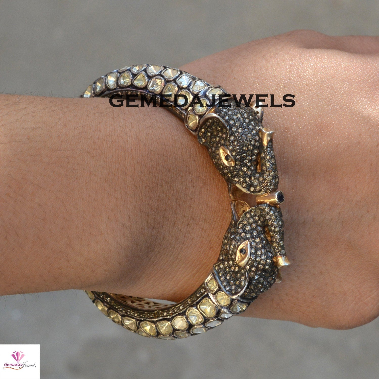 Polki Diamond Bangle, Victorian Silver Bangle, Elephant Bangle Jewelry, Bangle Bracelet Jewelry, 925 Silver Jewelry, Pave Diamond Bangle