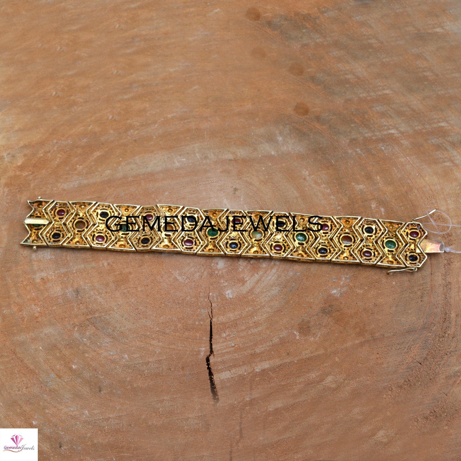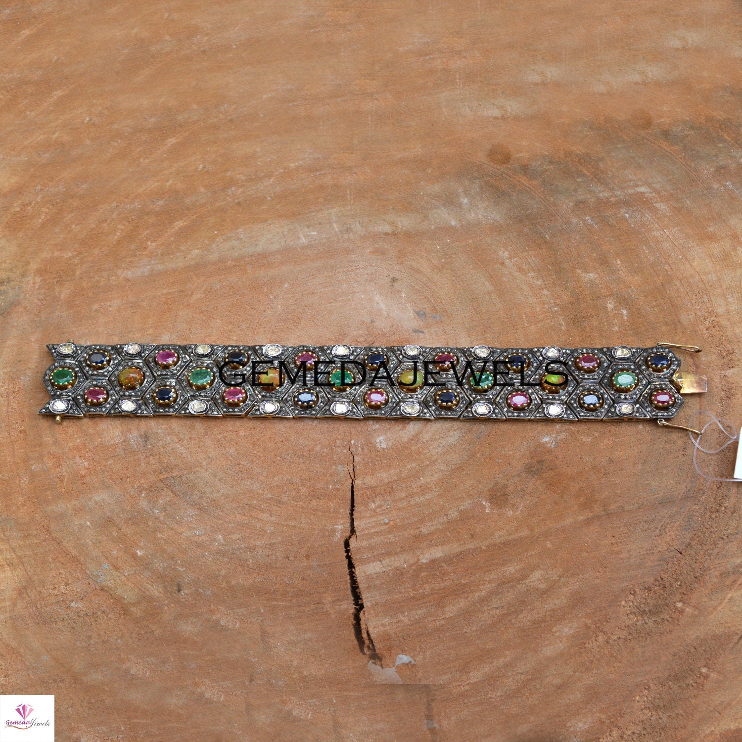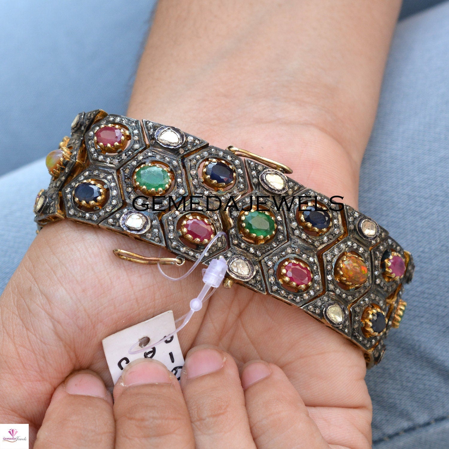 Polki Diamond Bracelet, Ruby Opal Emerald Gemstone Bracelet, Pave Diamond Jewelry, 14k Gold Plated Jewelry, 925 Silver Sapphire Bracelet, Victorian Bracelet, Gift