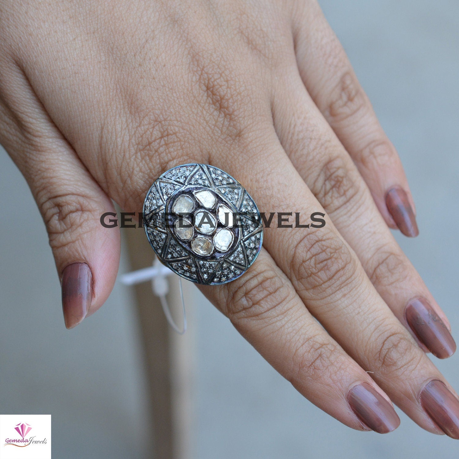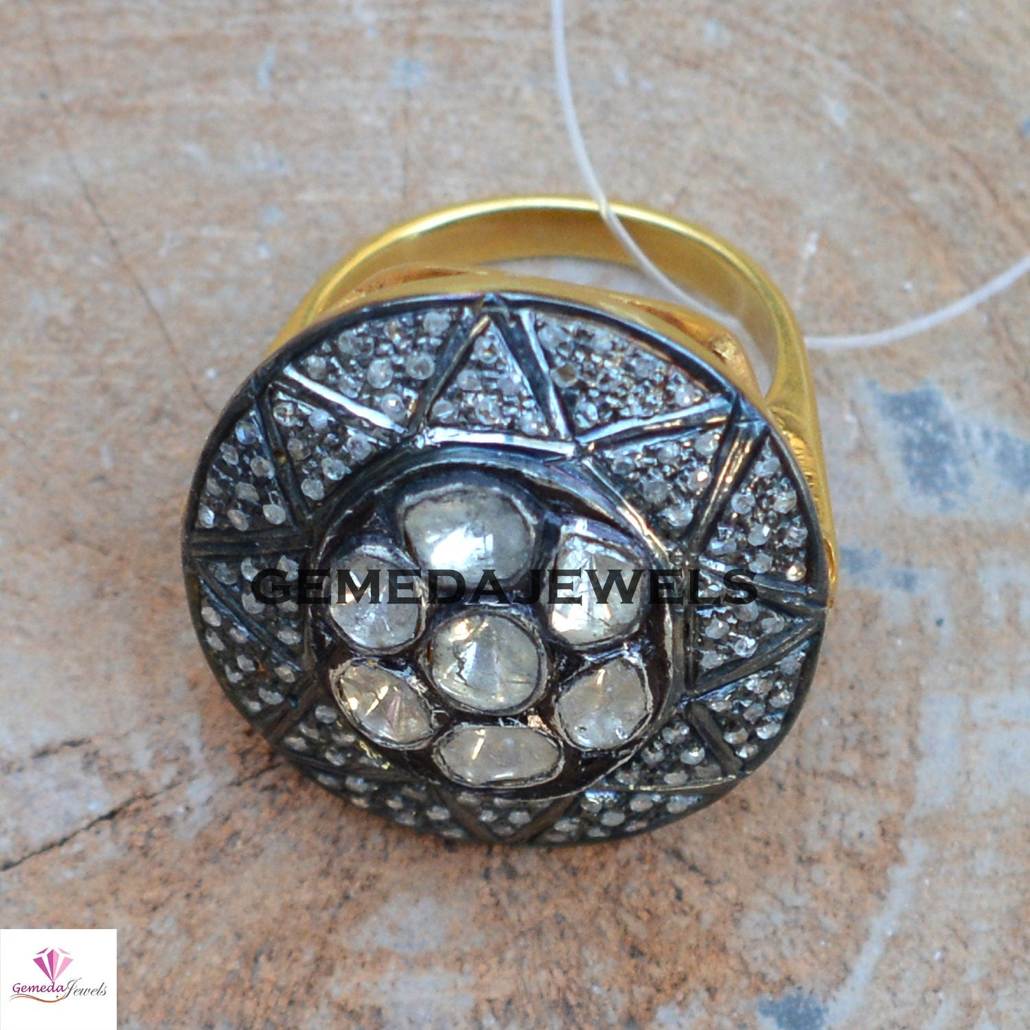 Polki Diamond Silver Ring, Solitaire Diamond Ring, Pave Diamond Jewelry, 925 Silver Ring, Gold Vermeil Jewelry, Diamond Silver Jewelry, Gift