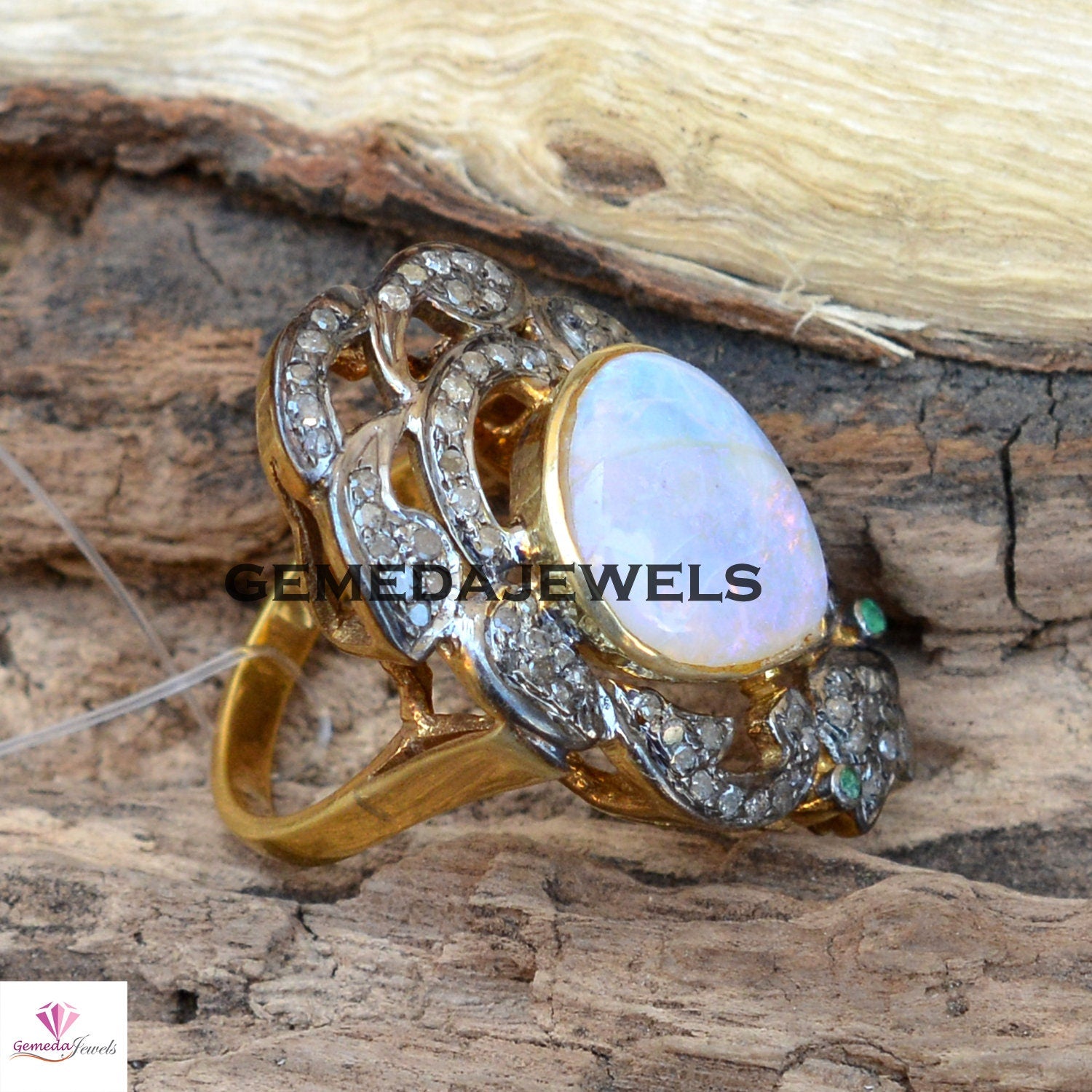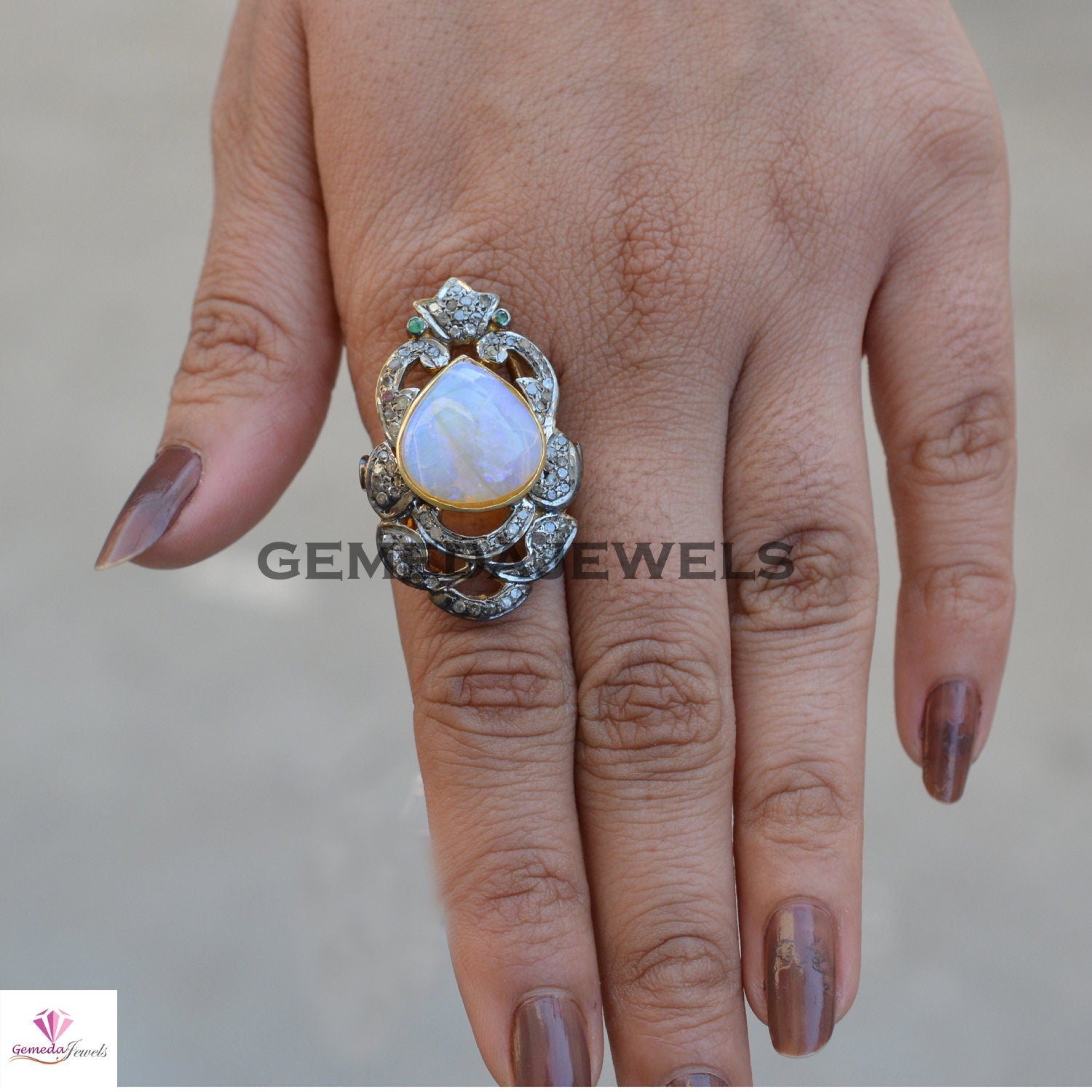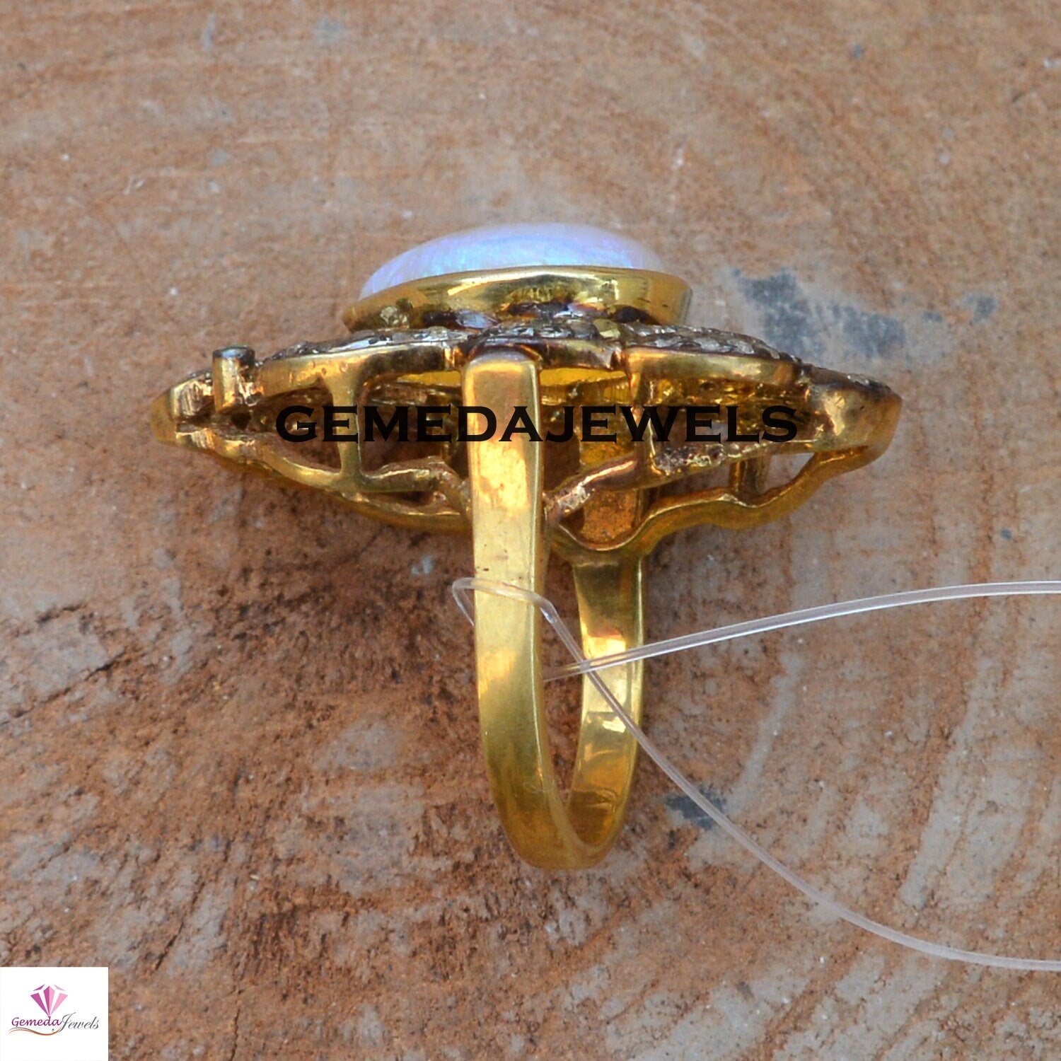 Rainbow Moonstone Ring, Pave Diamond Ring, Gemstone Ring Jewelry, Moonstone Diamond Ring, 925 Silver Jewelry, 14k Gold Plated Ring, Gifts
