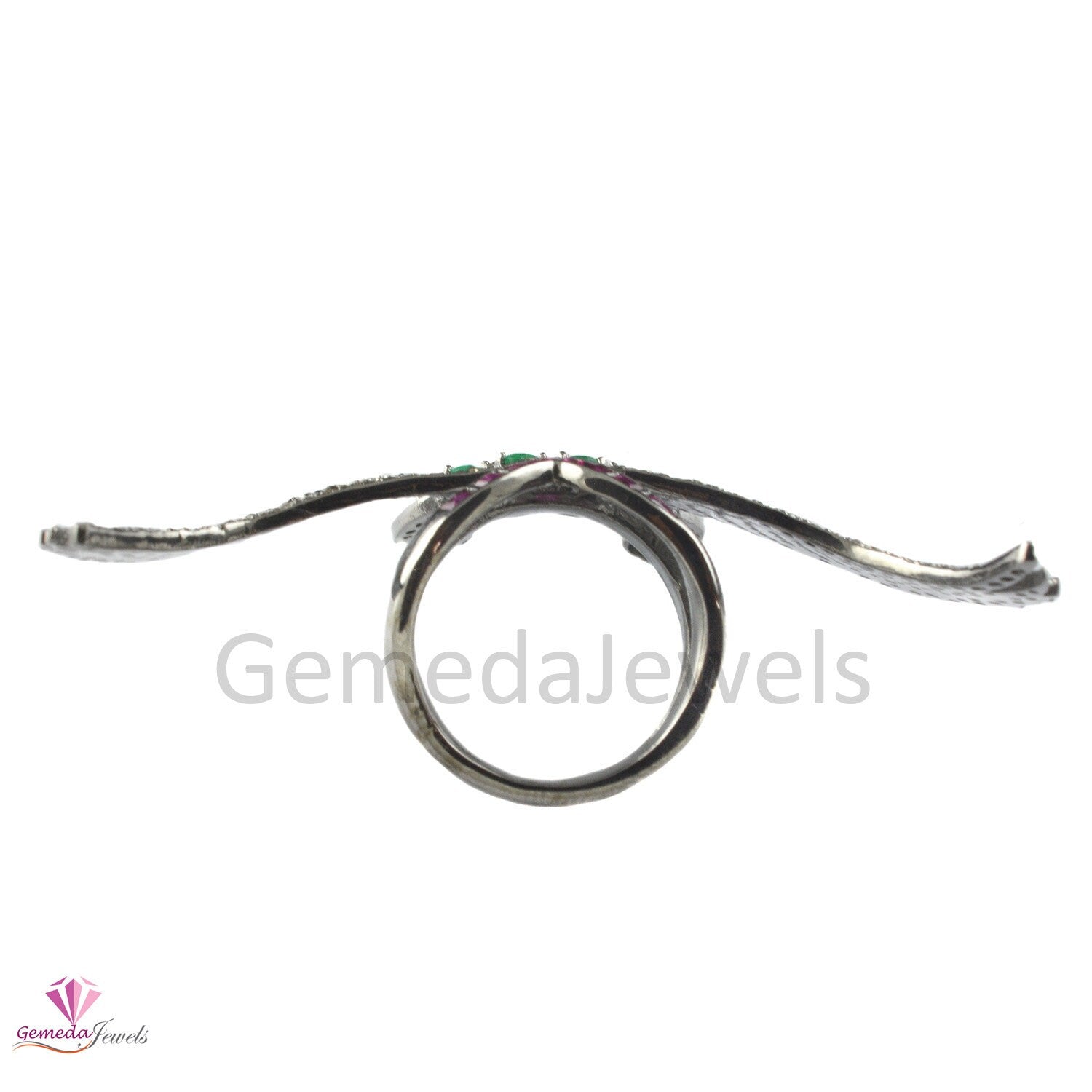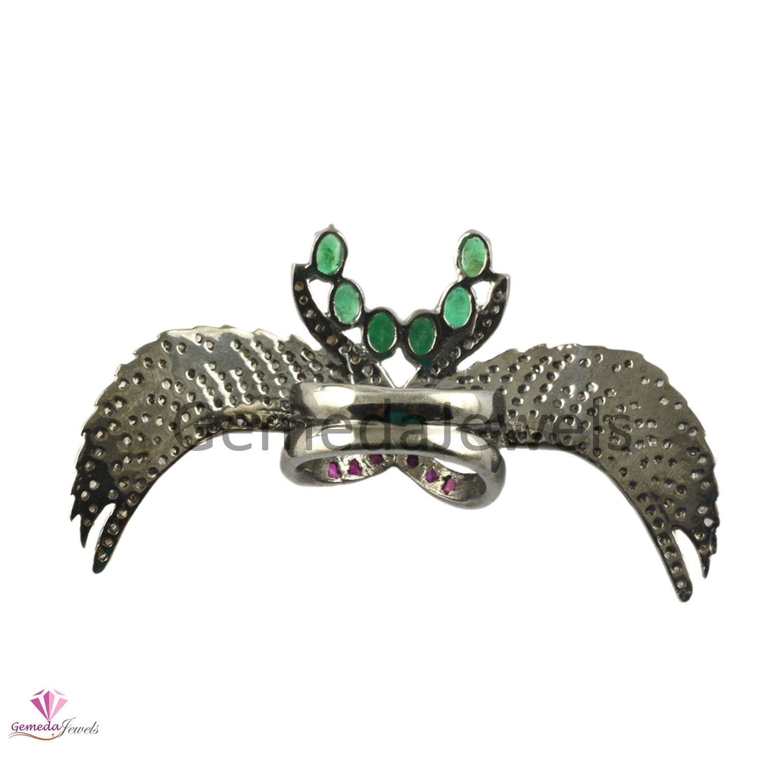 Real Ruby Gemstone 1.78 CTS Natural Pave Diamond Wing Ring Solid 925 Silver Emerald Gemstone Jewelry, Gemstone Silver Ring, Gift For Her