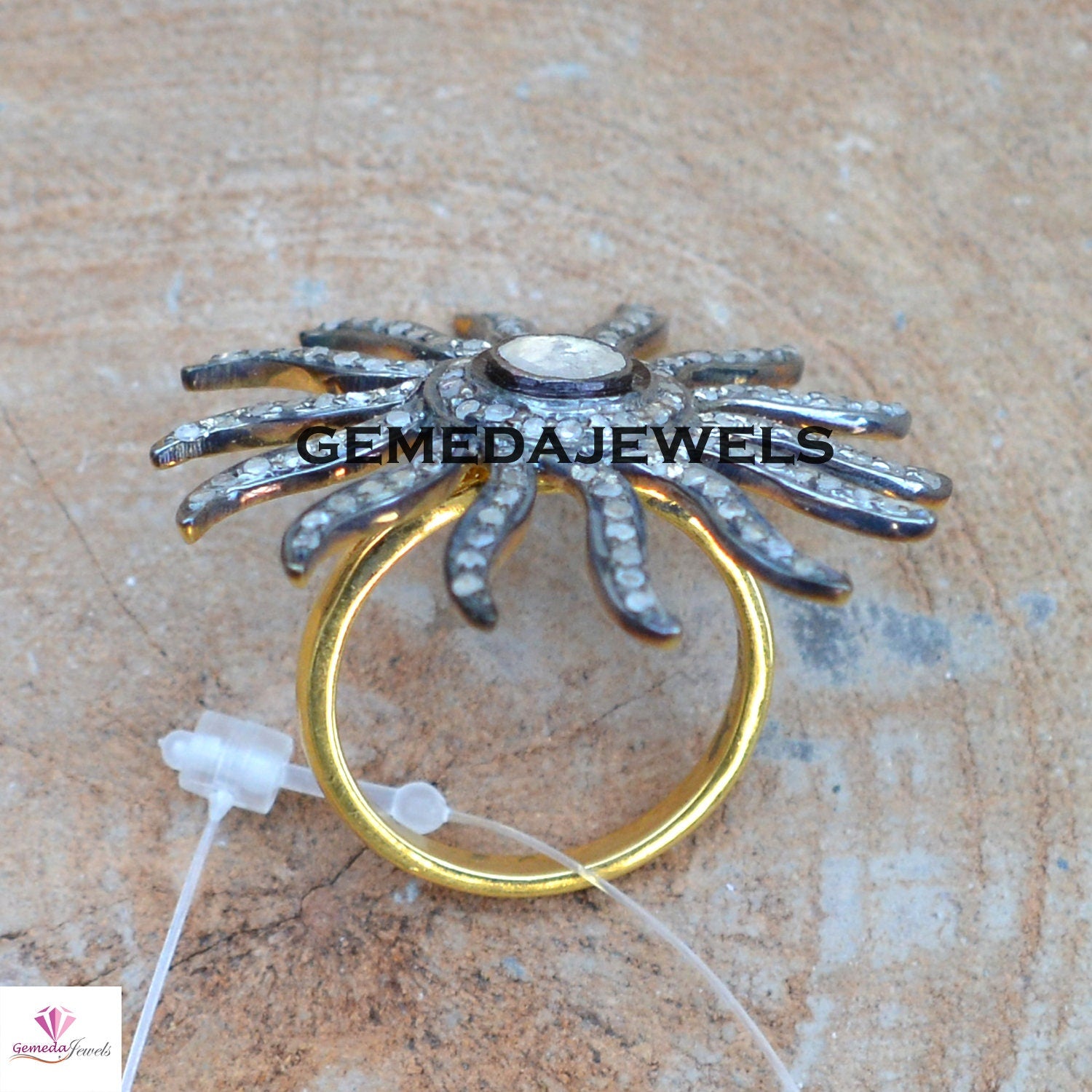 Rose Cut Polki Diamond Sun Ring, 925 Sterling Silver Ring, Diamond Silver Jewelry, 14k Gold Filled Ring, Sun Flower Pave Diamond Ring, Gifts