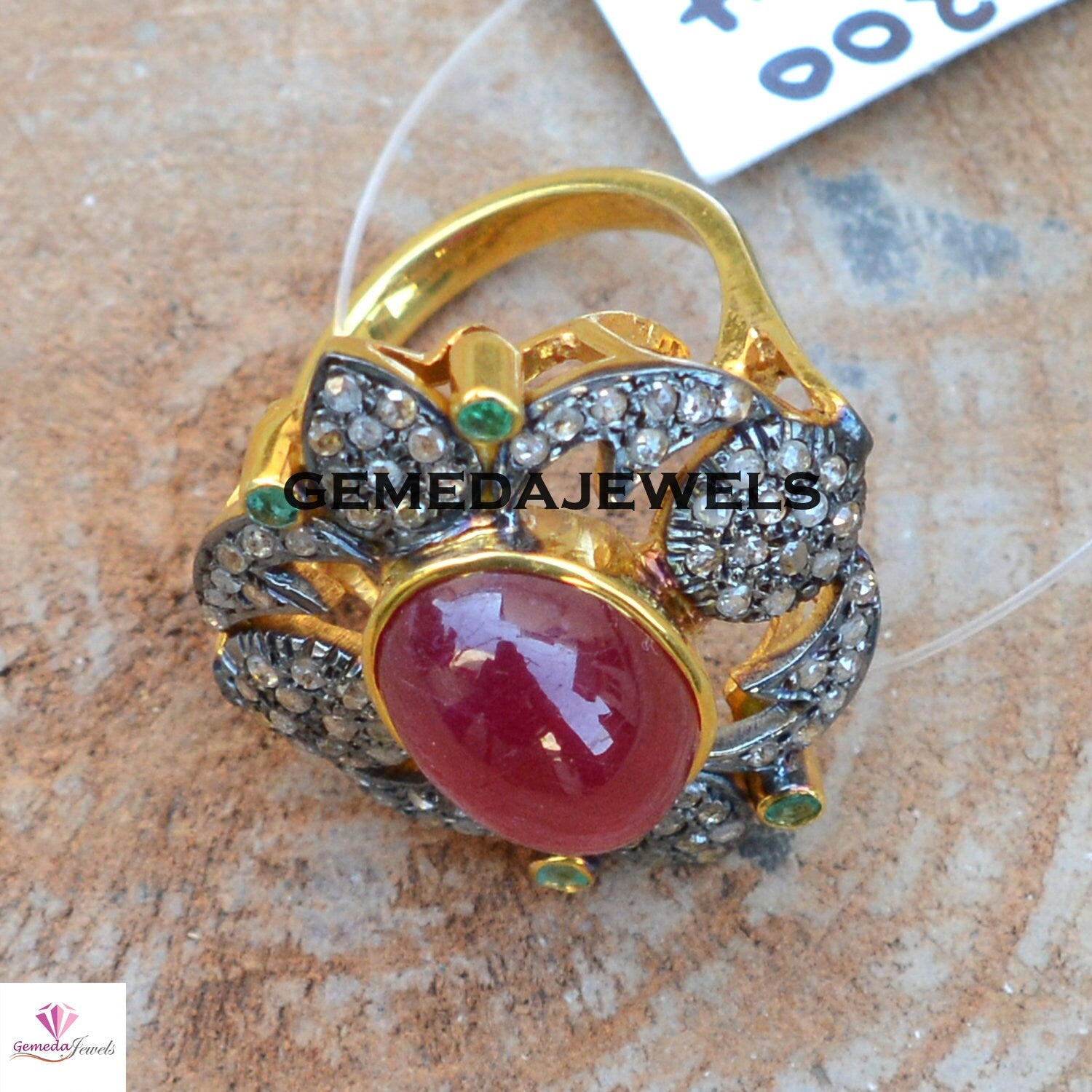 Ruby Gemstone Ring, Gold Filled Ring Jewelry, 925 Sterling Silver Ring, Gemstone Silver Jewelry, Pave Diamond Ring, Valentine's Day Gifts