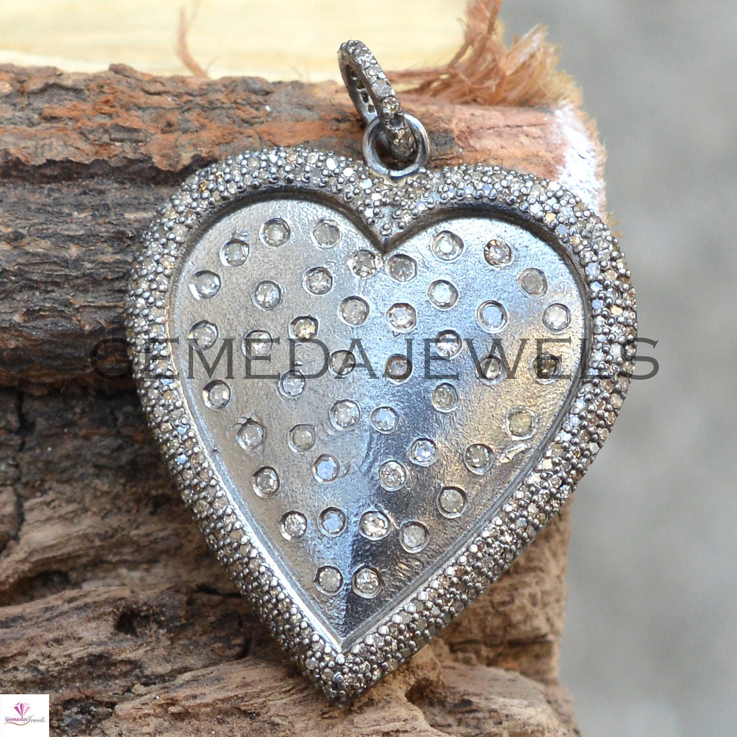 16" Link Chain, Pave Diamond Pendant, Solid 925 Silver Necklace Jewelry, Handmade Diamond Heart Pendant, Valentine Day Gift, Gift For her