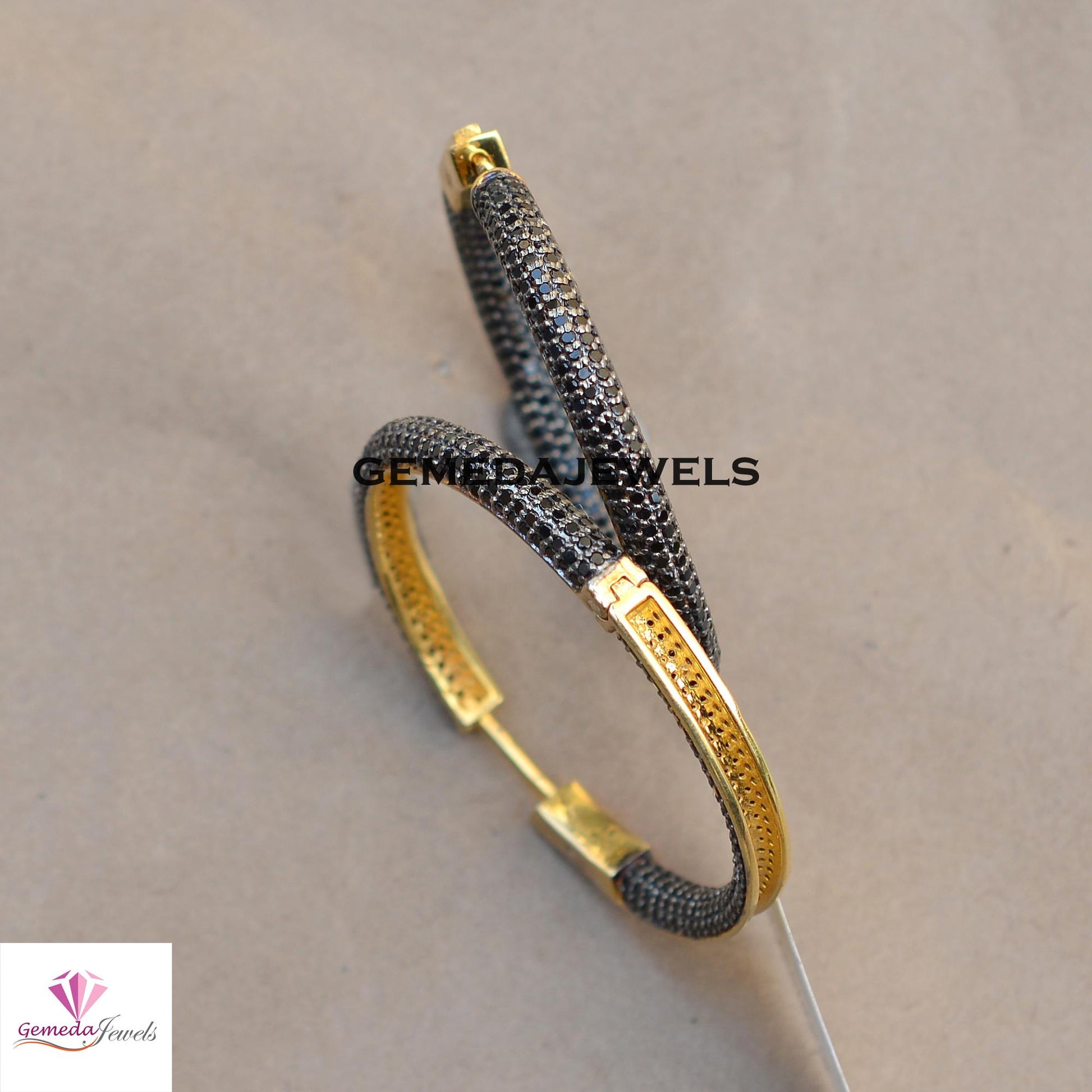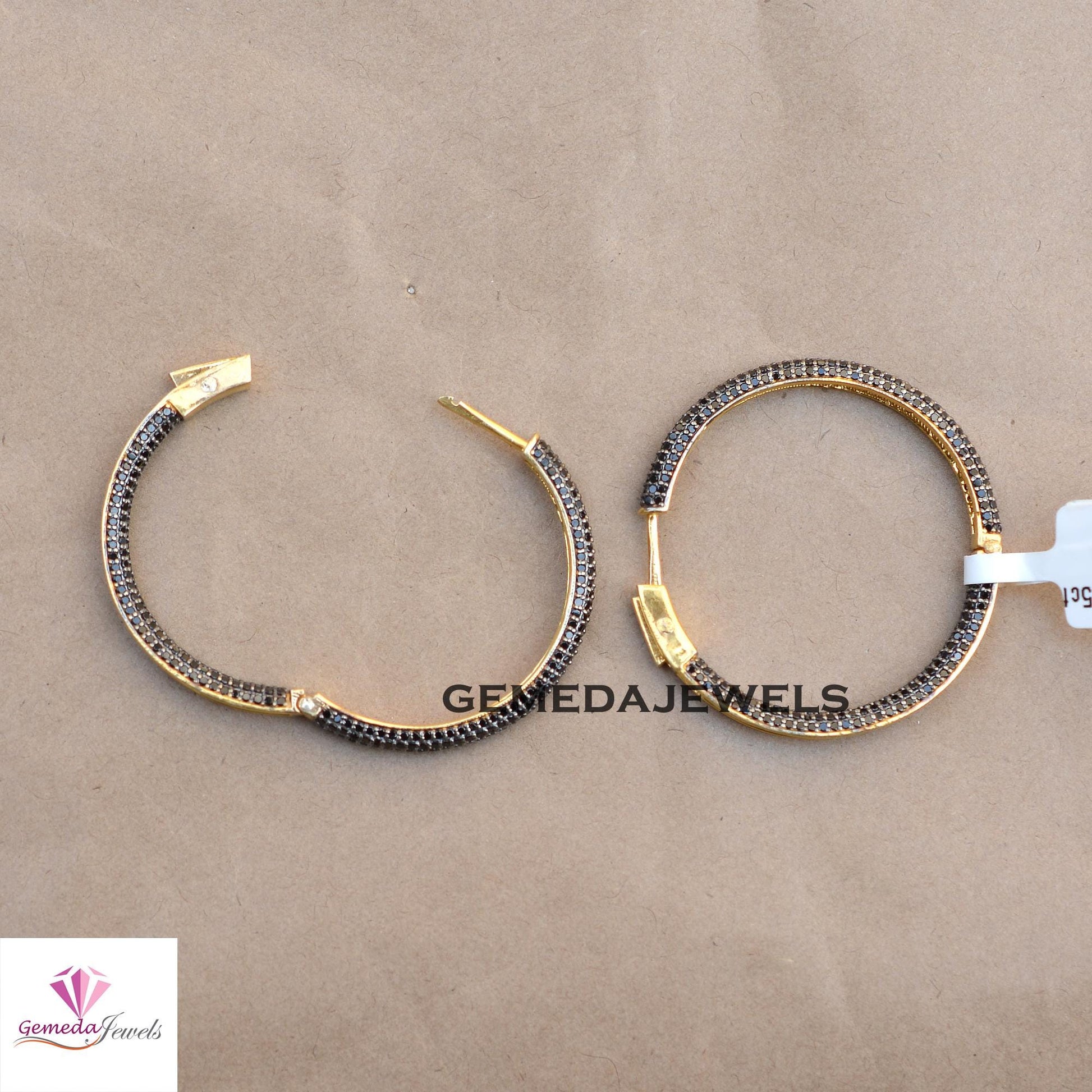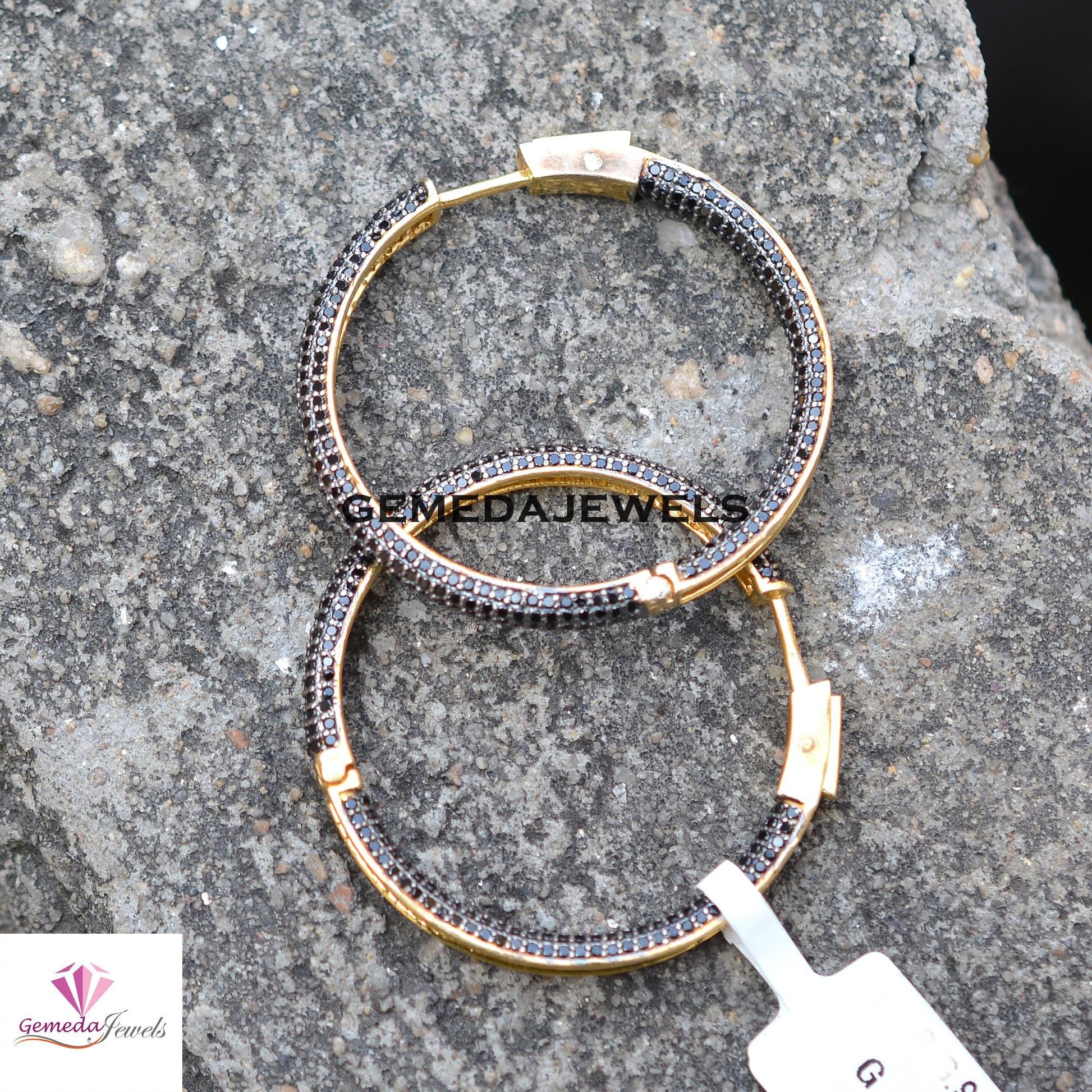 Sale 40MM Black Spinel Gemstone Hoop Earrings, 925 Silver Jewelry, 14k Gold Vermeil Earrings, Gemstone Silver Earrings, Women's Gift Jewelry