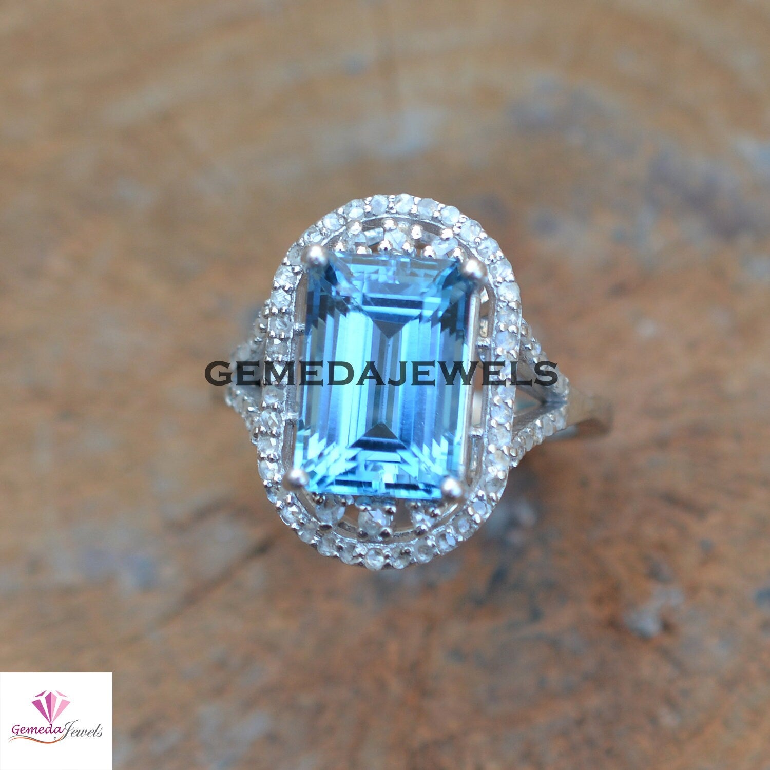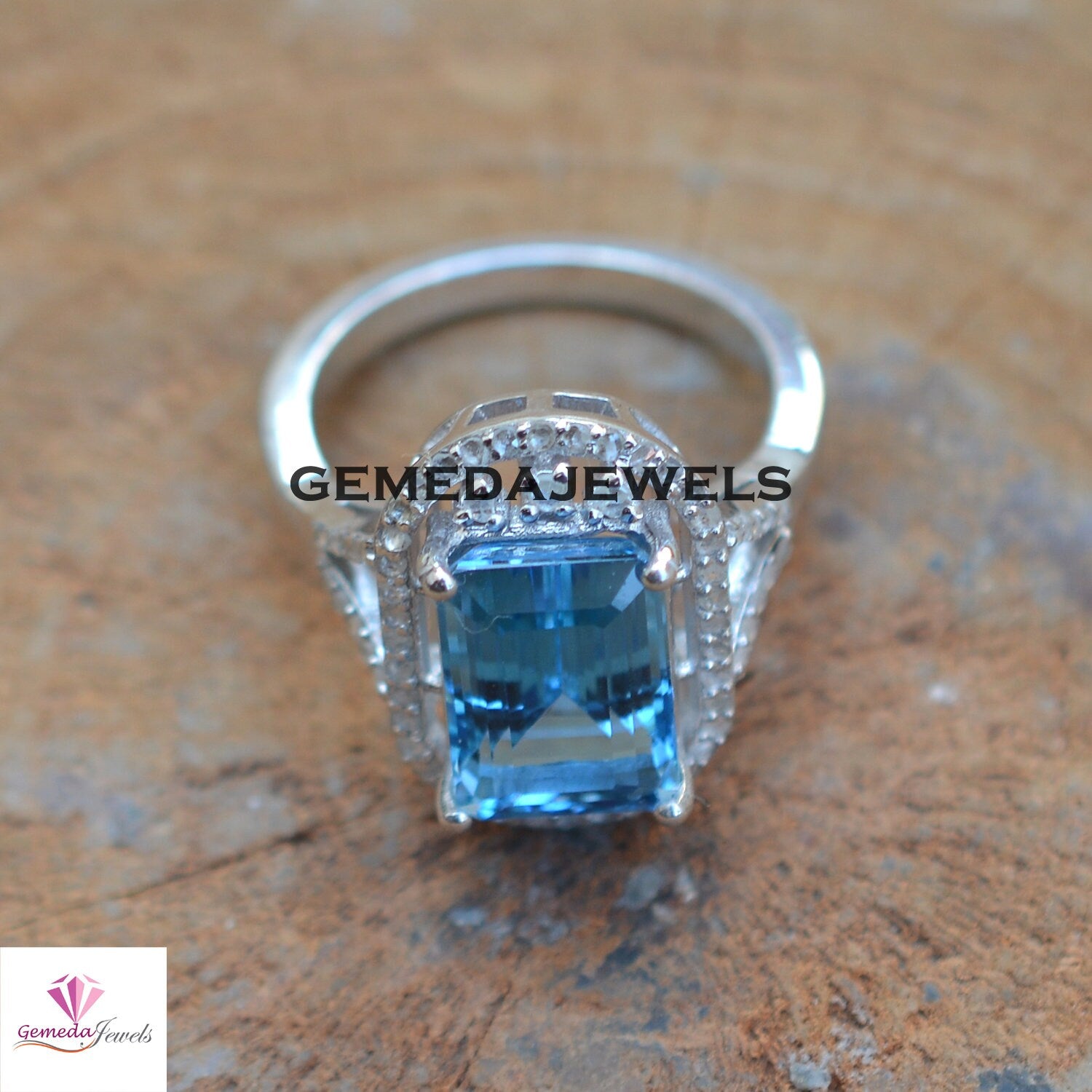 Sale!! Blue Topaz Ring, 925 Sterling Silver Jewelry, Pave Diamond Ring, Gemstone Silver Jewelry, Diamond Jewelry, Birthstone Ring Jewelry