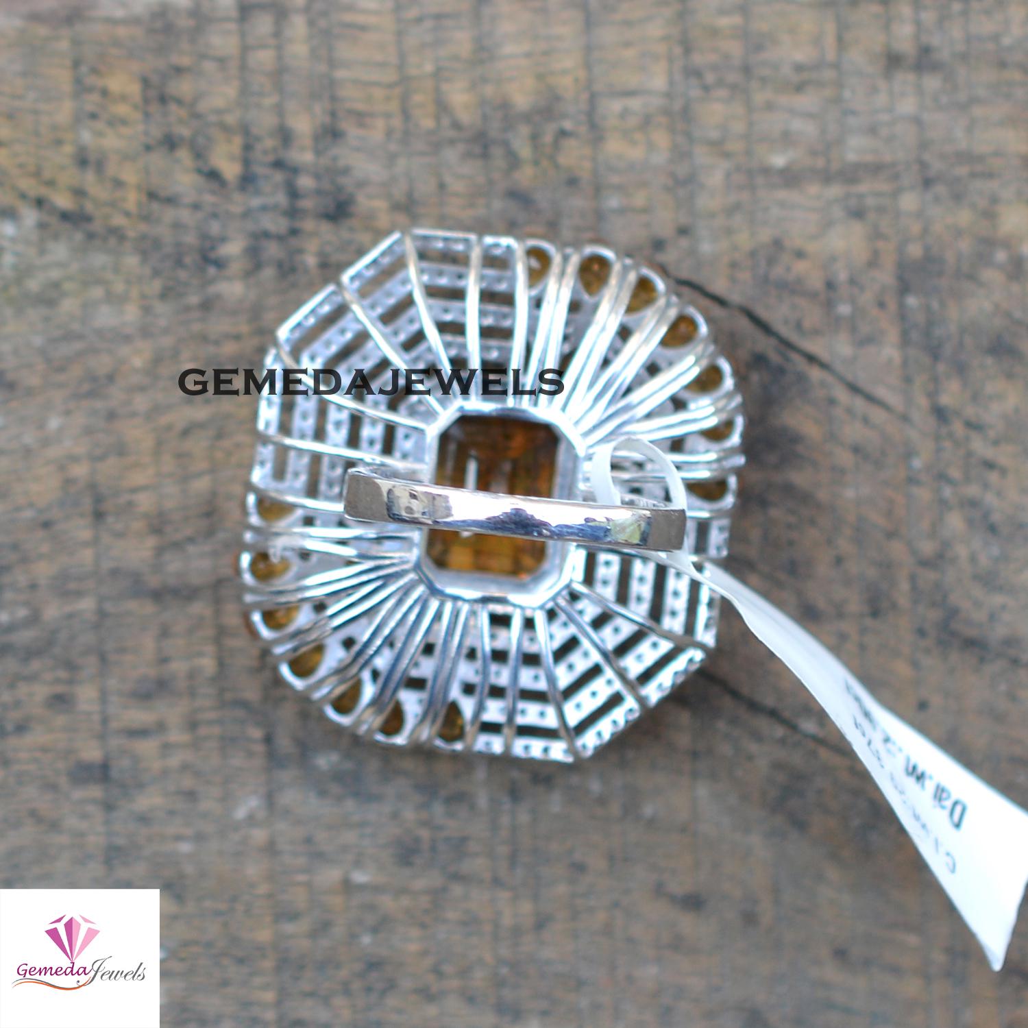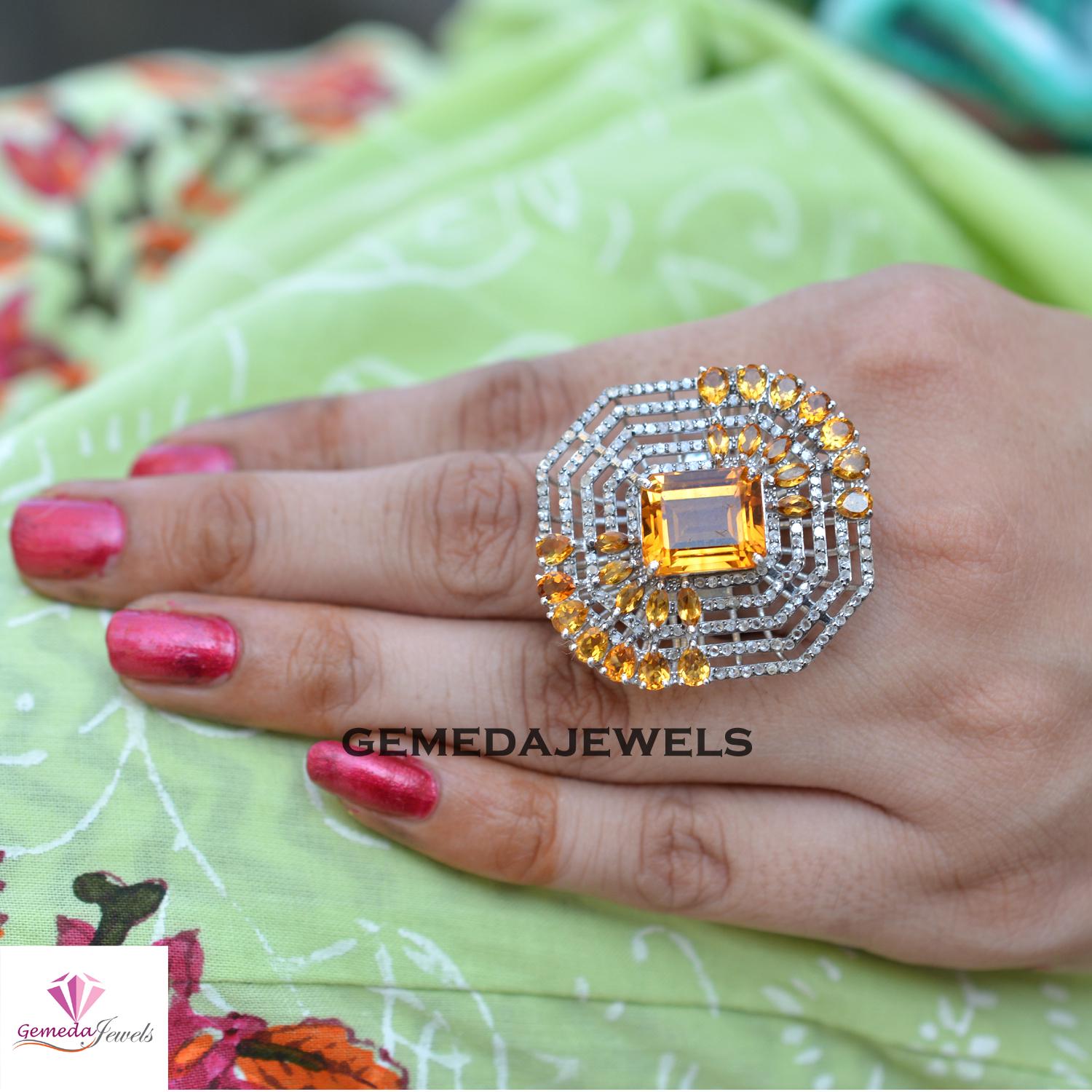Sale! Citrine Gemstone Ring, Pave Diamond Ring, 925 Sterling Silver Jewelry, Gemstone Diamond Jewelry, Women Gift Jewelry, Wedding Jewelry