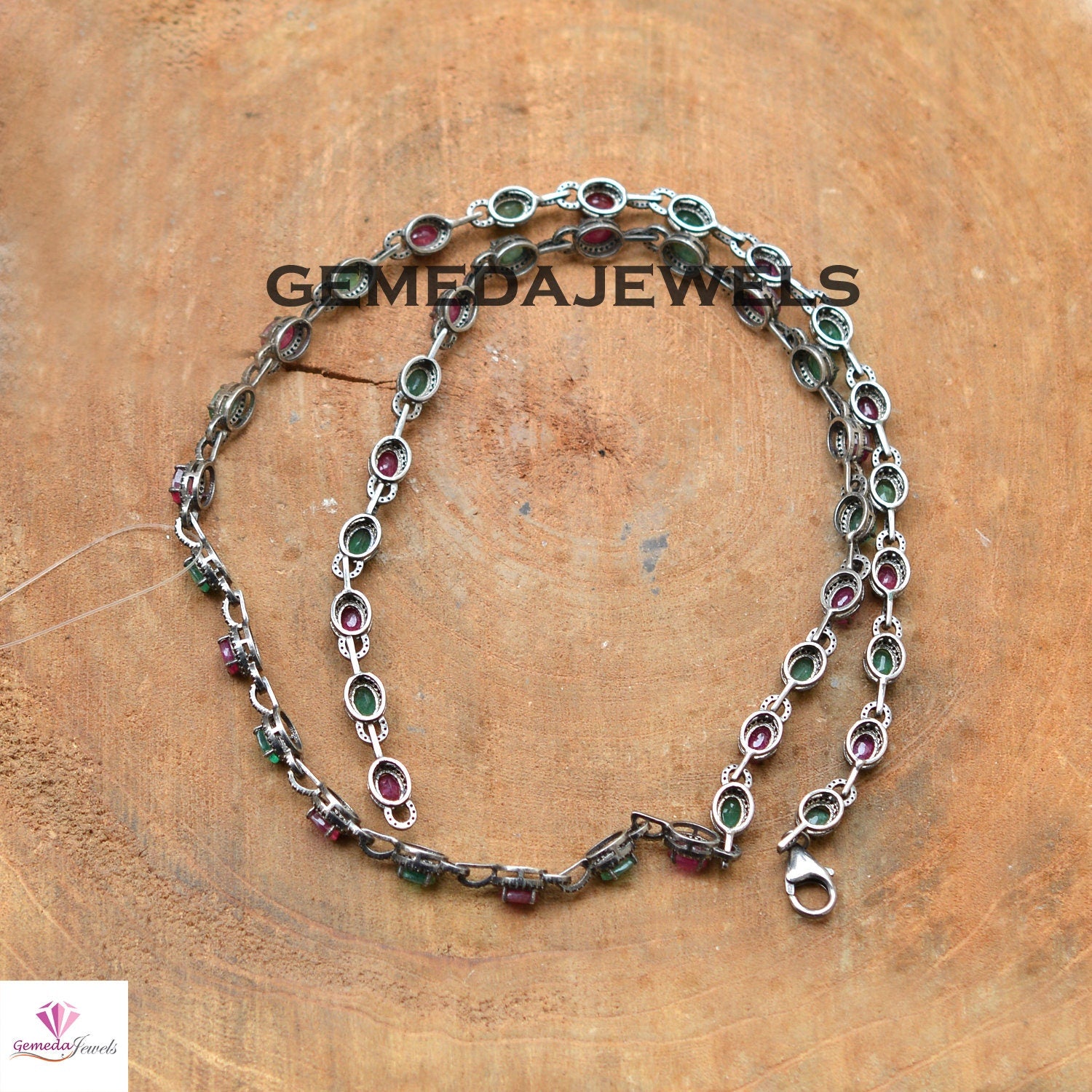 Emerald Silver Necklace, Black Spinel Long Necklace, Ruby Gemstone Jewelry, 925 Silver Jewelry, Gemstone Necklace Jewelry, 26" Necklace Gift