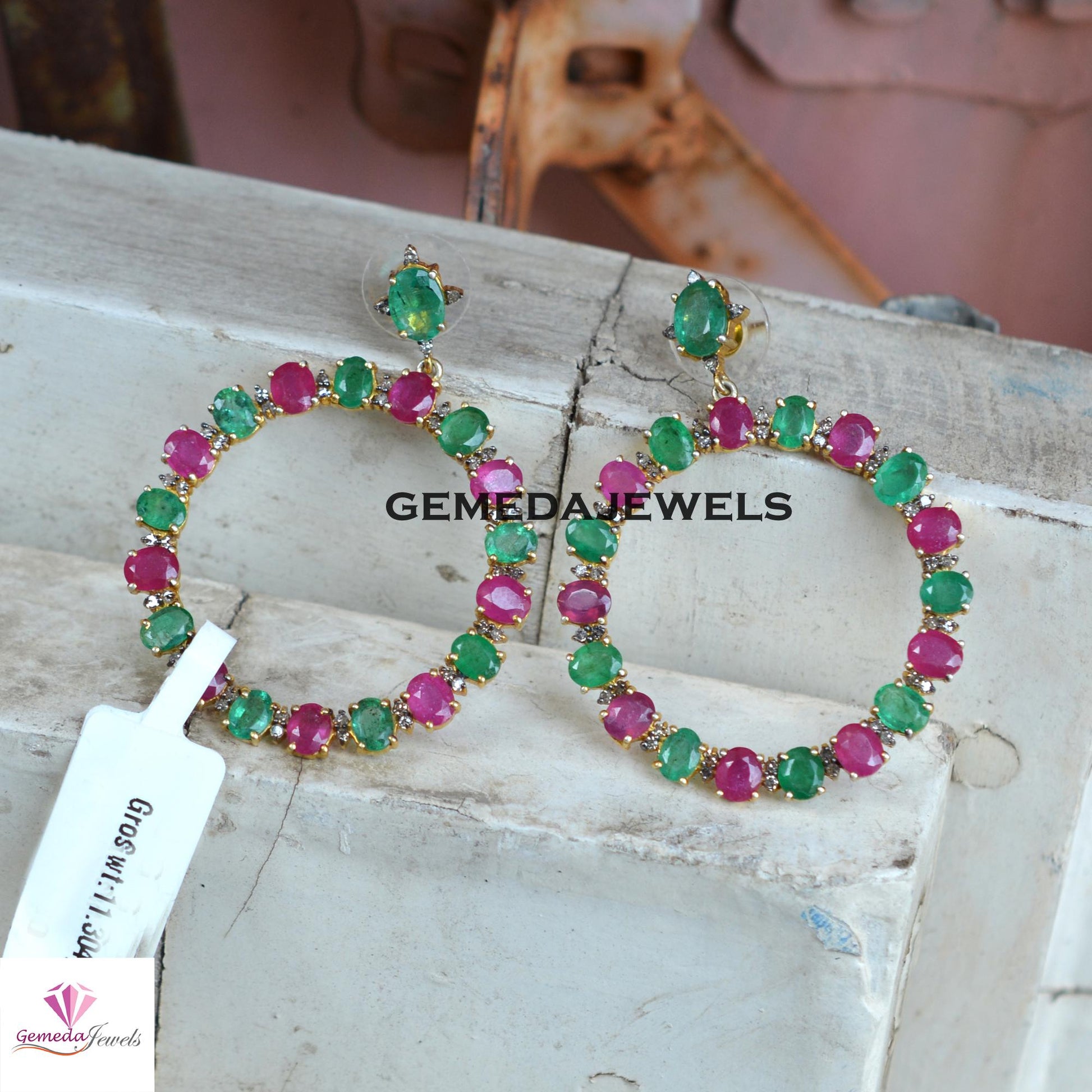 Sale!! Natural Emerald Gemstone Earrings, Ruby 925 Silver Earring Jewelry, Pave Diamond Earrings, Gold Vermeil Jewelry, Women's Jewelry