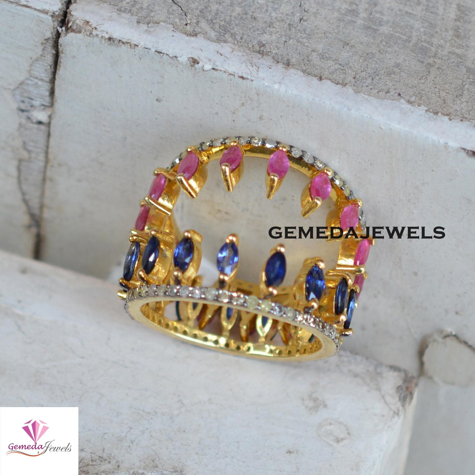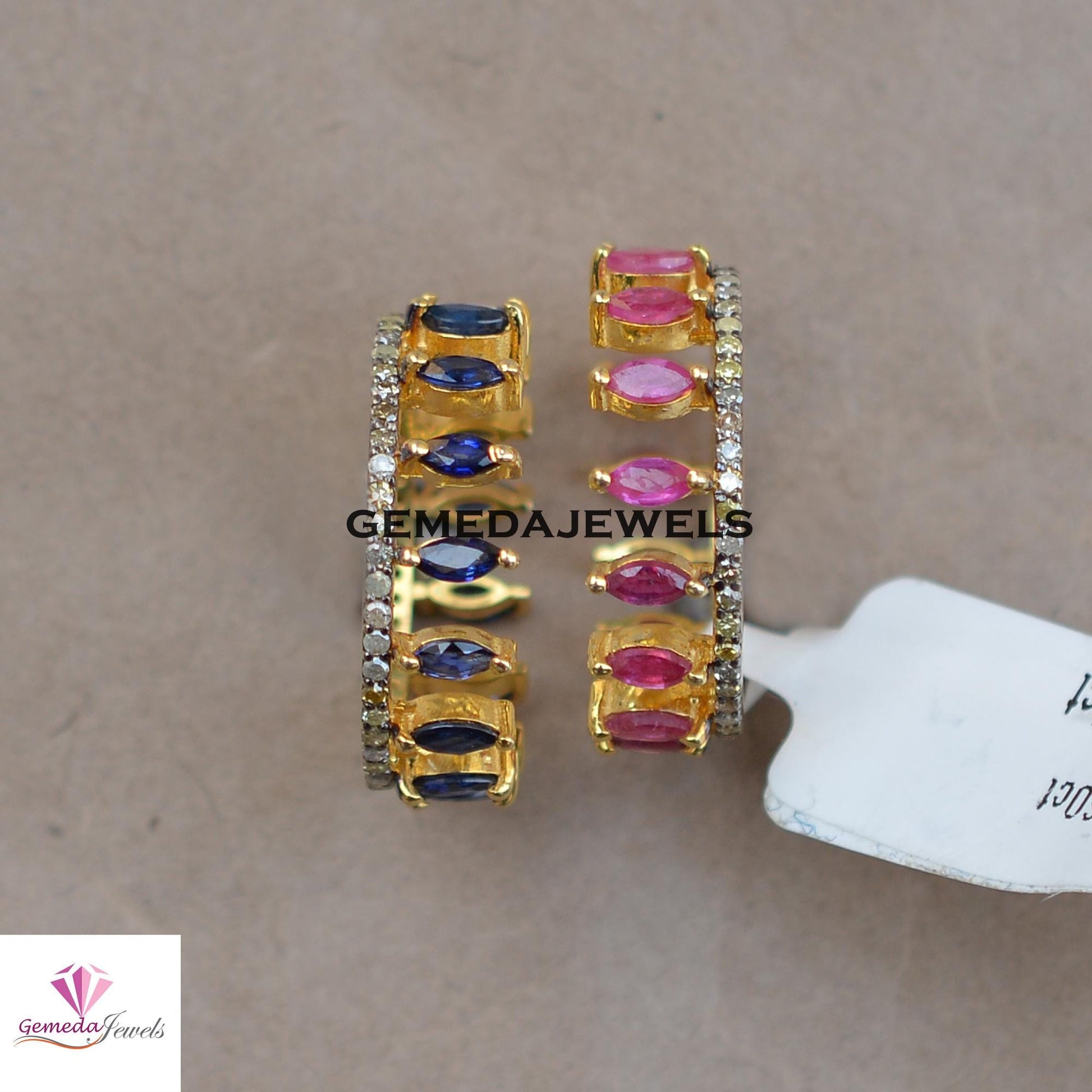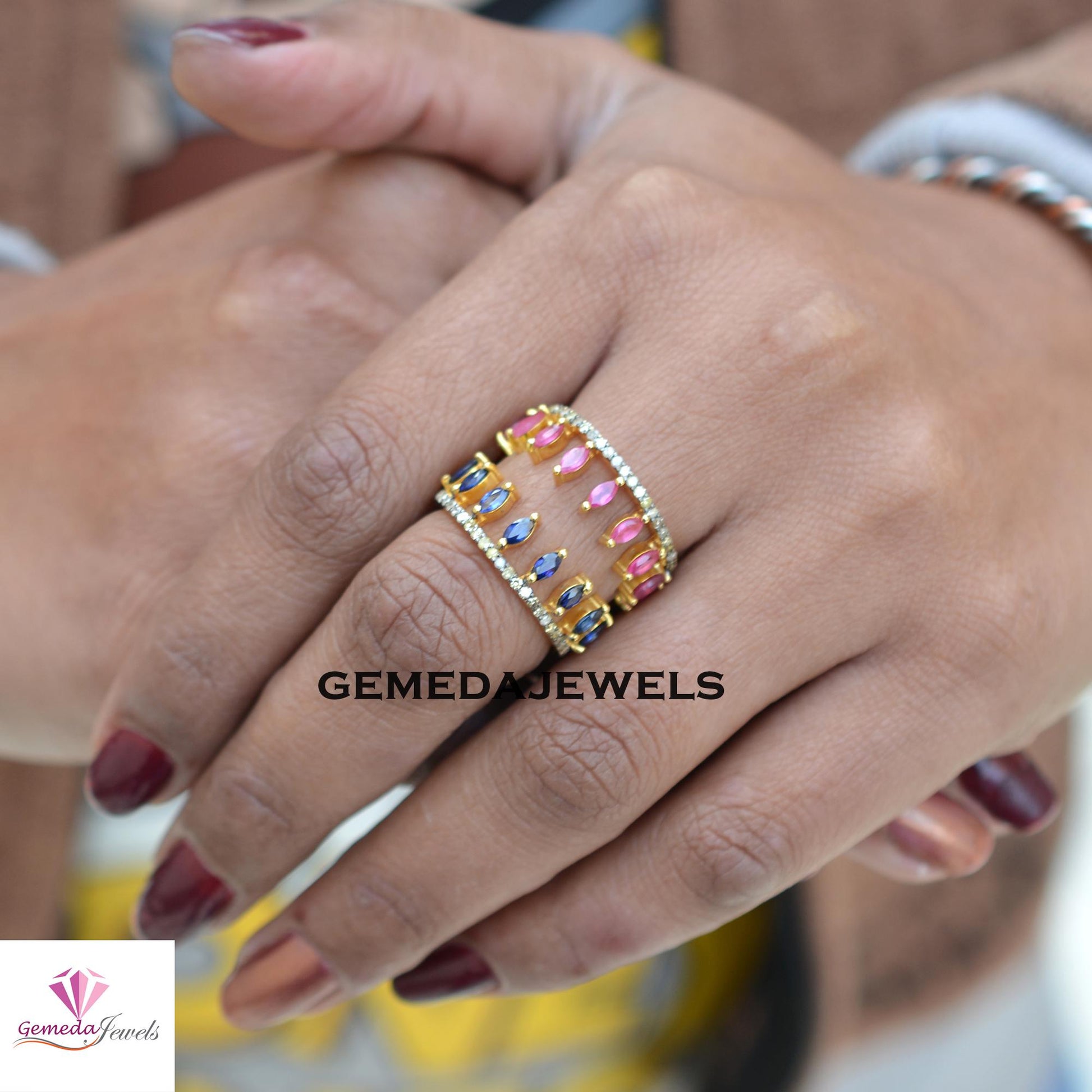 Sale! Natural Ruby Gemstone Ring, Sapphire Gemstone Jewelry, 14k Gold Plated Jewelry, 925 Silver Ring, TWO IN ONE Band Ring, Gift For Her