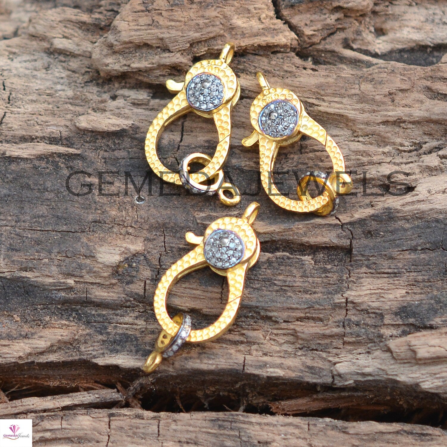 Sale! Pave Diamond Clasp Lock, 925 Silver Jewelry, Gold Vermeil Lock, Diamond Finding Lock, Diamond Silver Lobster Lock, Jewelry Accessories