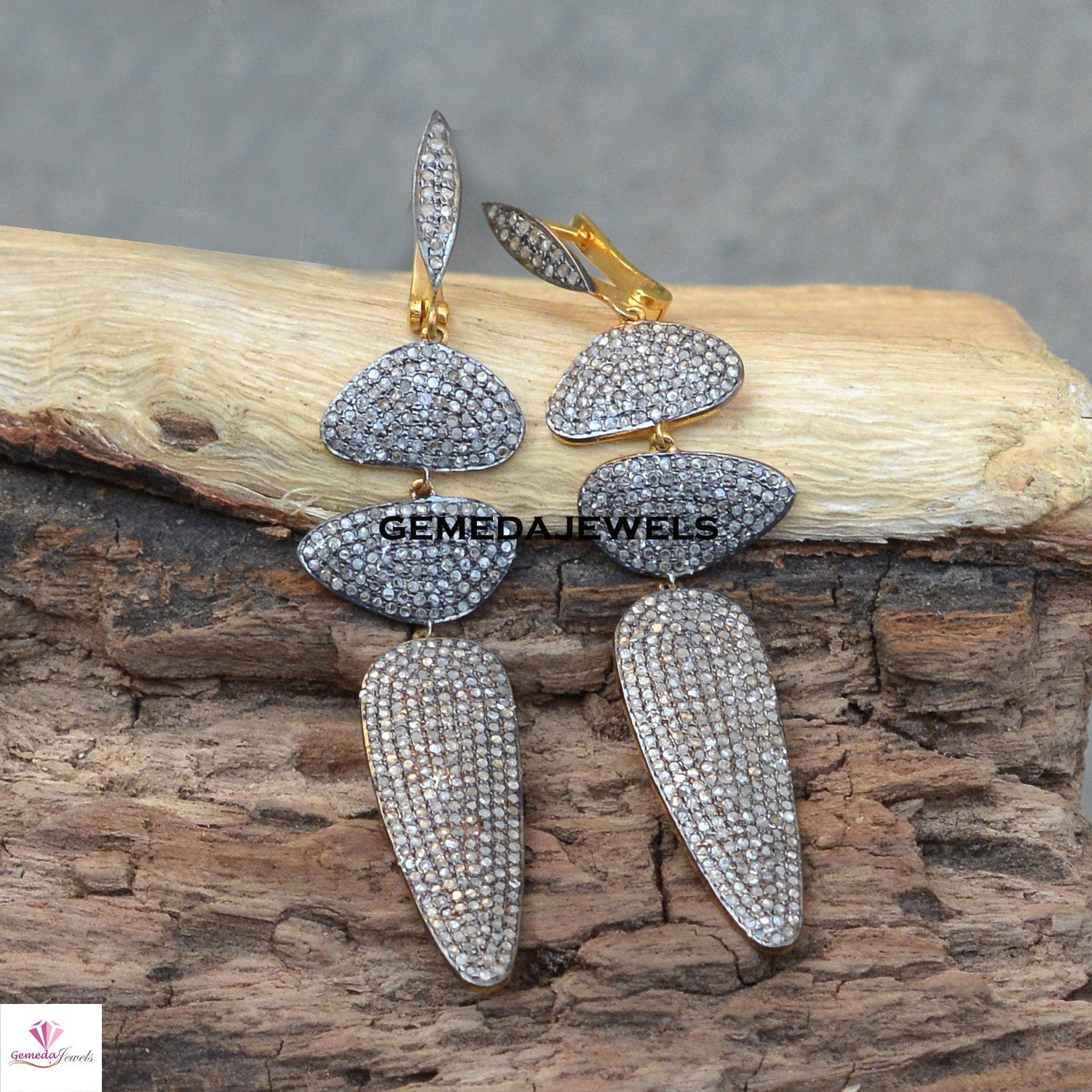 Sale! Pave Diamond Earrings, 925 Silver Jewelry, Gold Vermeil Earrings, Diamond Silver Jewelry, Silver Earrings Jewelry, Women Gift Jewelry