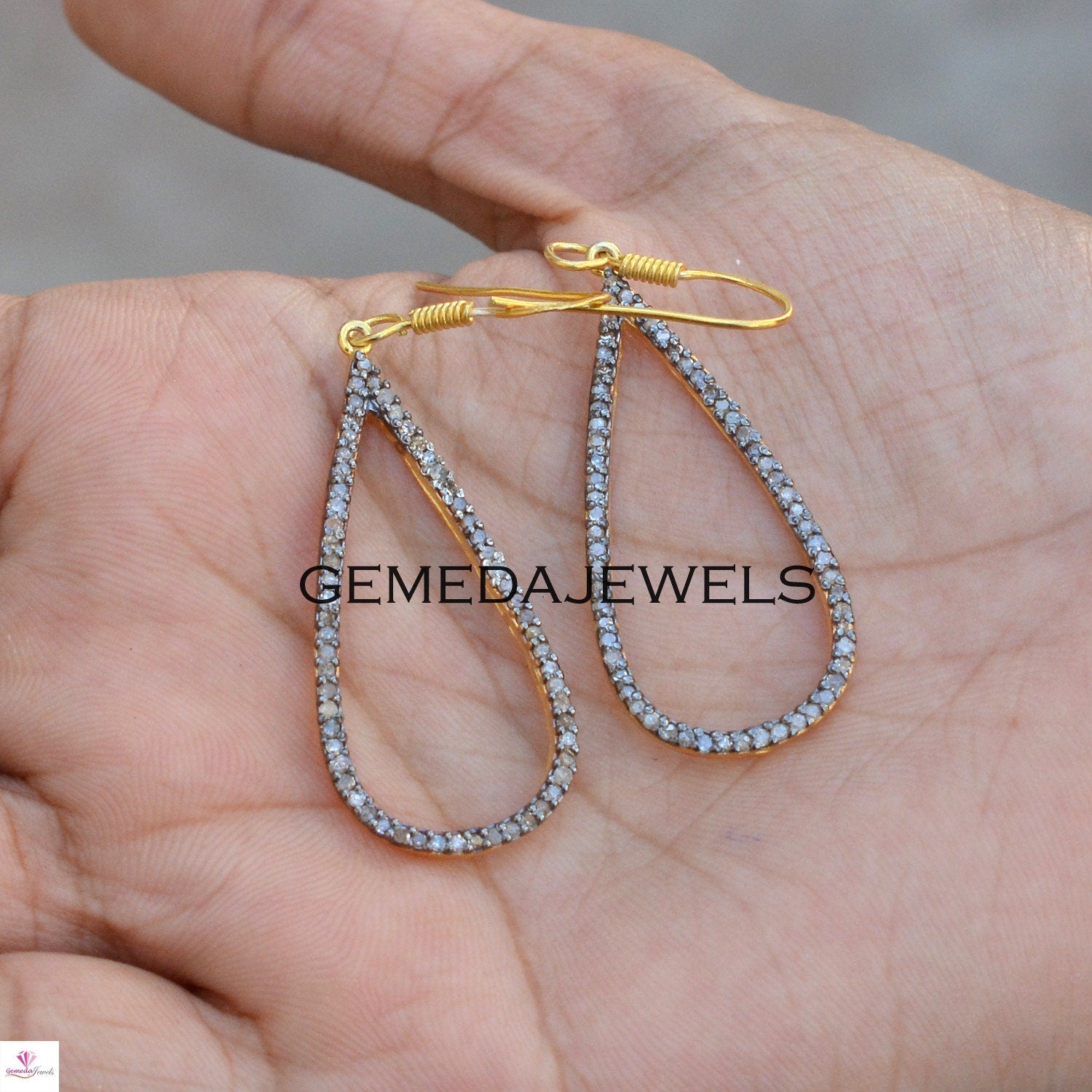 Sale! Pave Diamond Earrings, 925 Sterling Silver Jewelry, 14k Gold Earring, Ear Wire Earrings Jewelry, Women Gift Jewelry, Diamond Jewellery