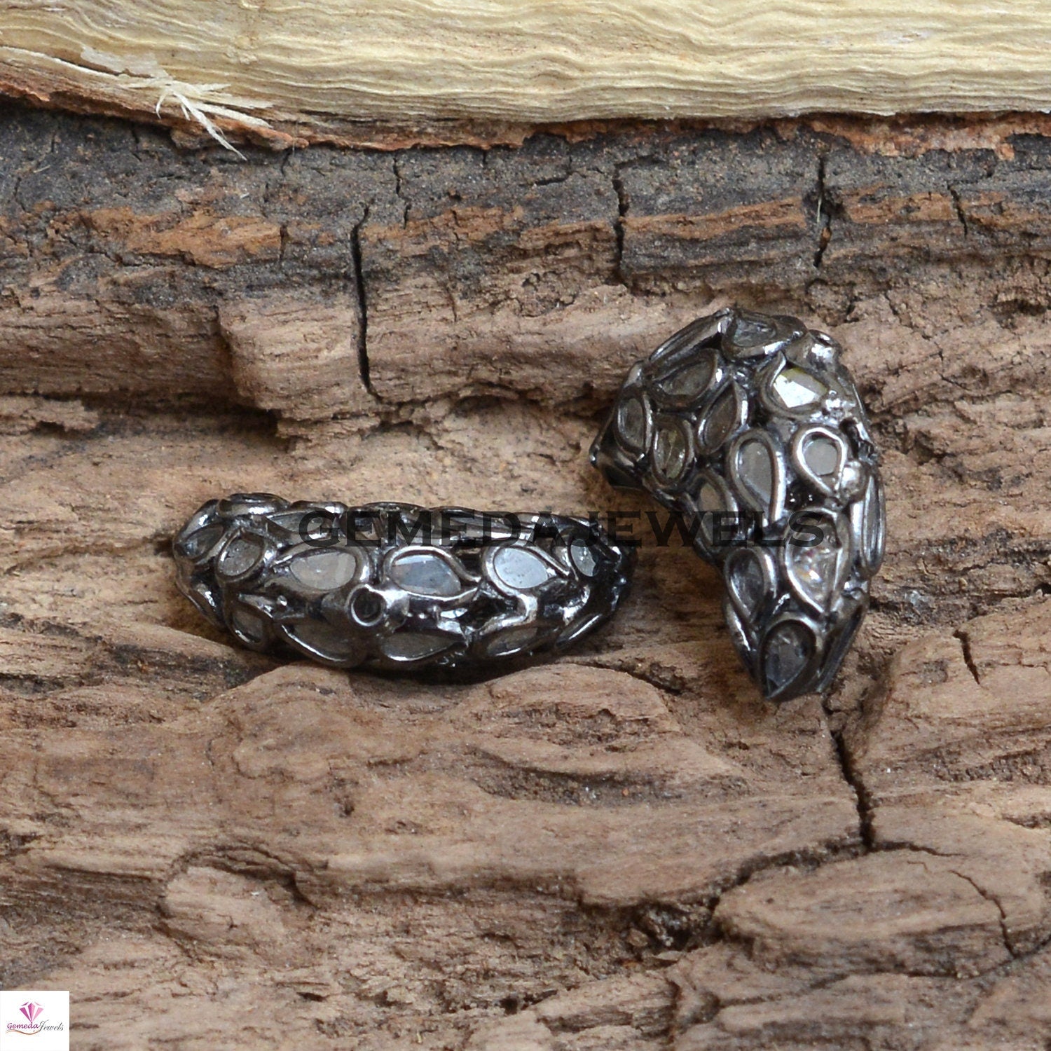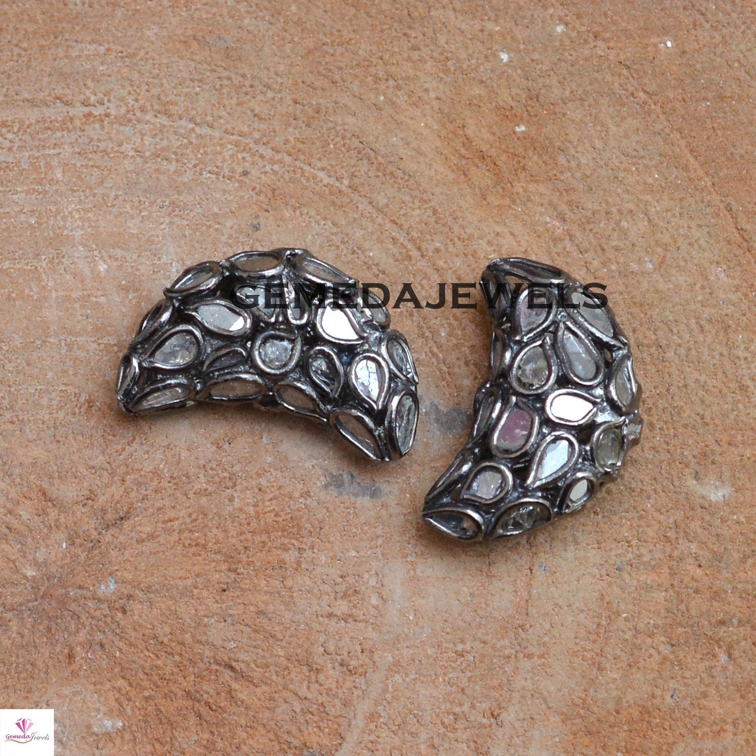 Sale!! Polki Diamond Slice Beads, Half Moon Beads, 925 Silver Diamond Beads, Slice Diamond Beads, Handmade Jewelry, Diamond Finding Beads