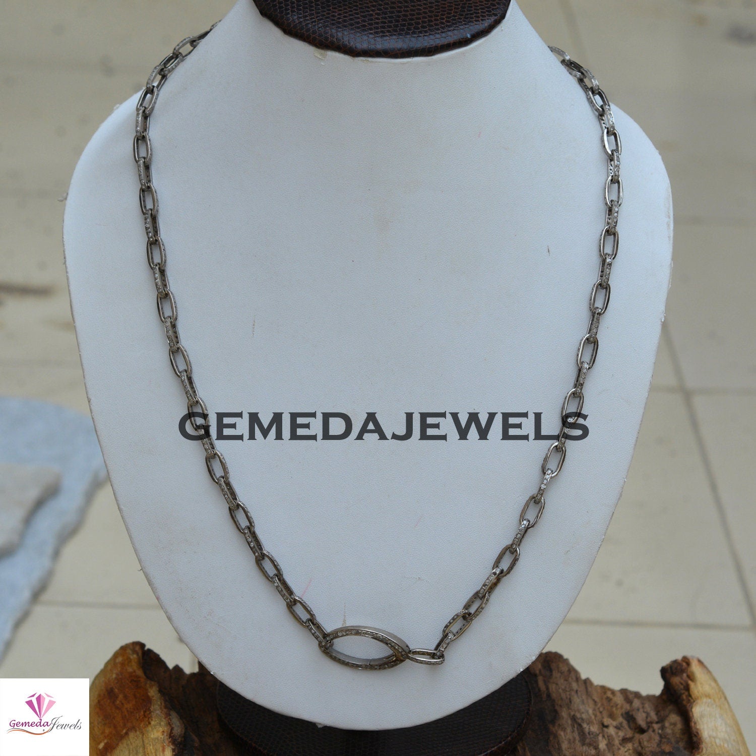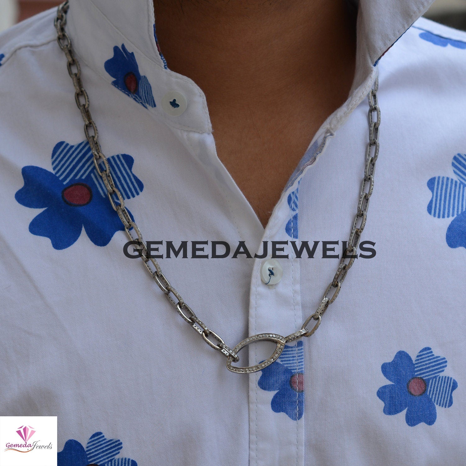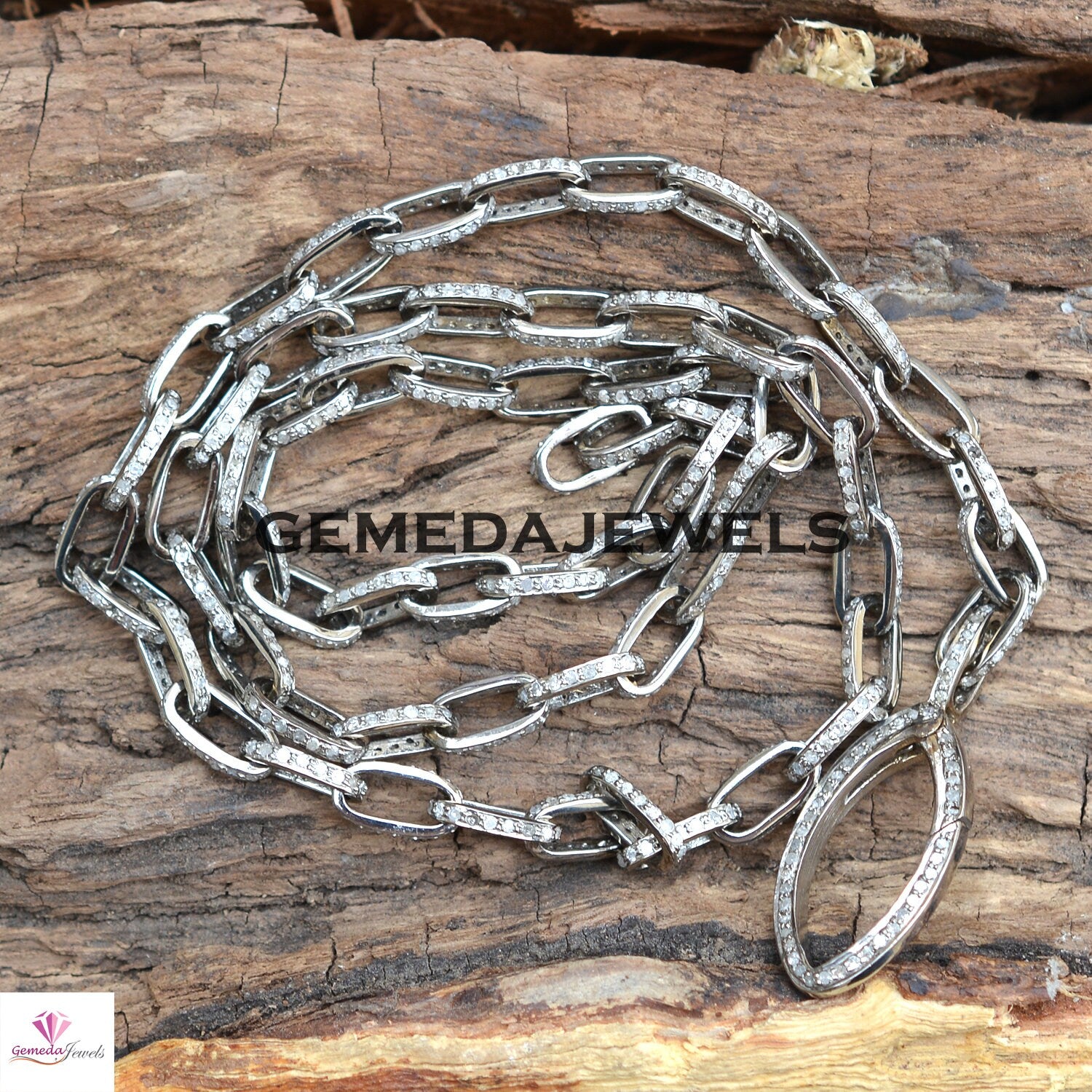Sale Real Pave Diamond Link Chain Necklace, Solid 925 Silver Necklace, Diamond Silver Jewelry, 24" Long Necklace Chain, Unisex Jewelry, Gift