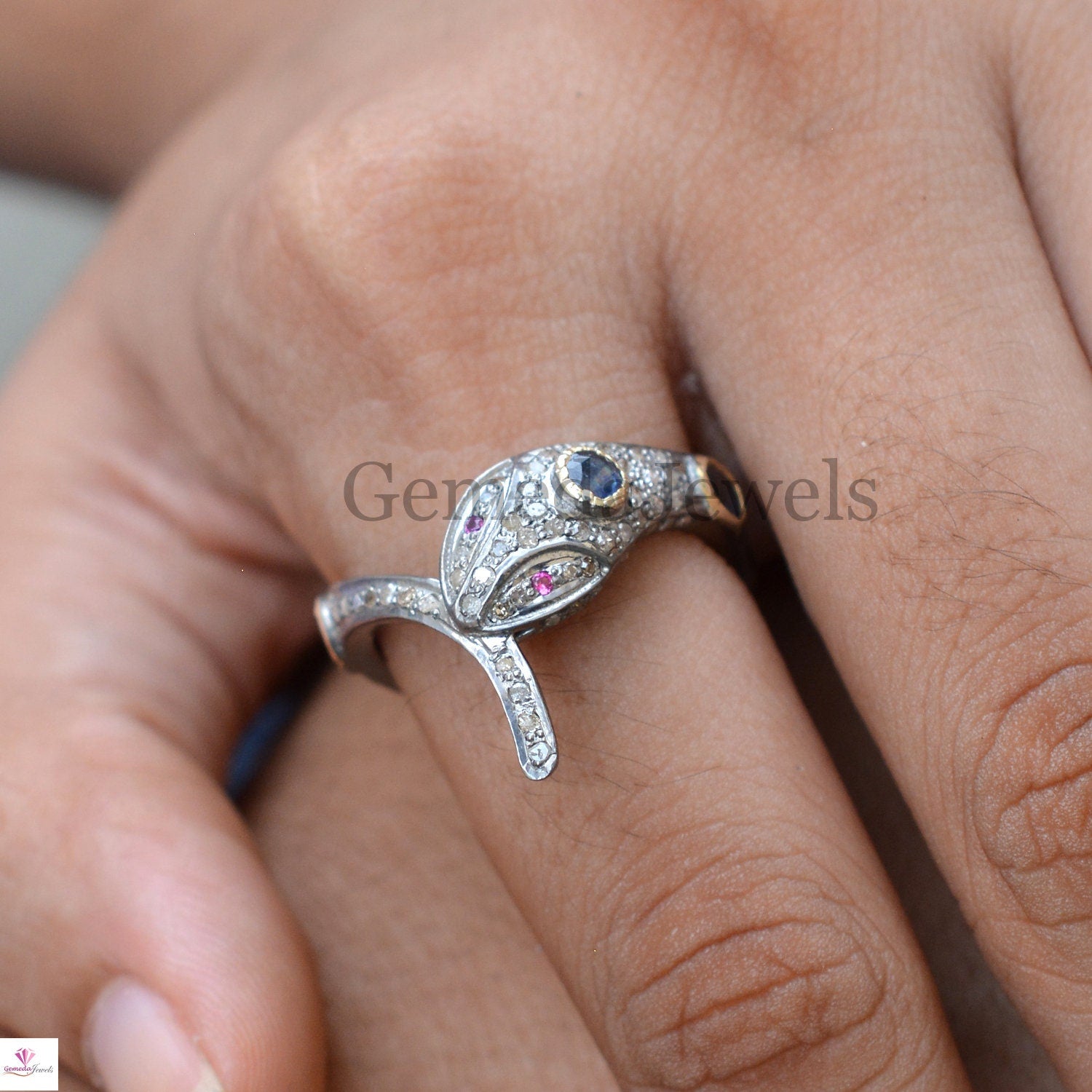 Blue Sapphire Gemstone Ring, Ruby Red Eyes Snake Ring, Pave Diamond Ring Jewelry, Gemstone Jewelry, Diamond Snake Ring, Boho Jewelry, Gifts
