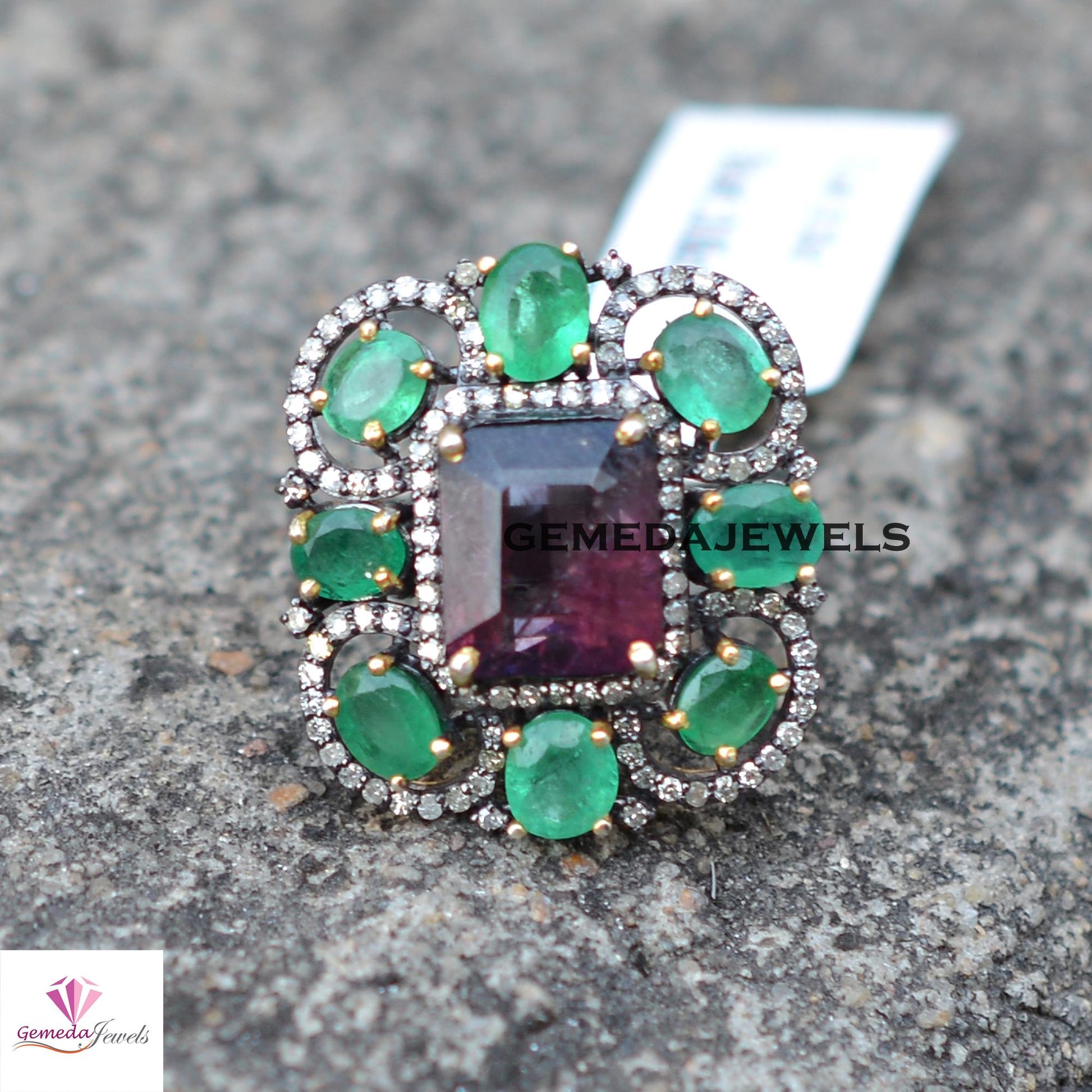 Sale! Stunning Pink Tourmaline Ring, Emerald Ring Jewelry, Rhodium Plated 925 Silver Jewelry, Pave Diamond Jewelry, Gemstone Jewellery, Gift