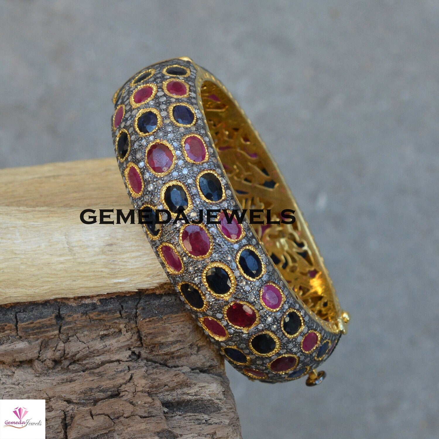 Sapphire Silver Bangle, Pave Diamond Bangle, Ruby Gemstone Bangle, Gemstone Silver Jewelry, 925 Silver Bangle, Gold Plated Jewelry, Gifts