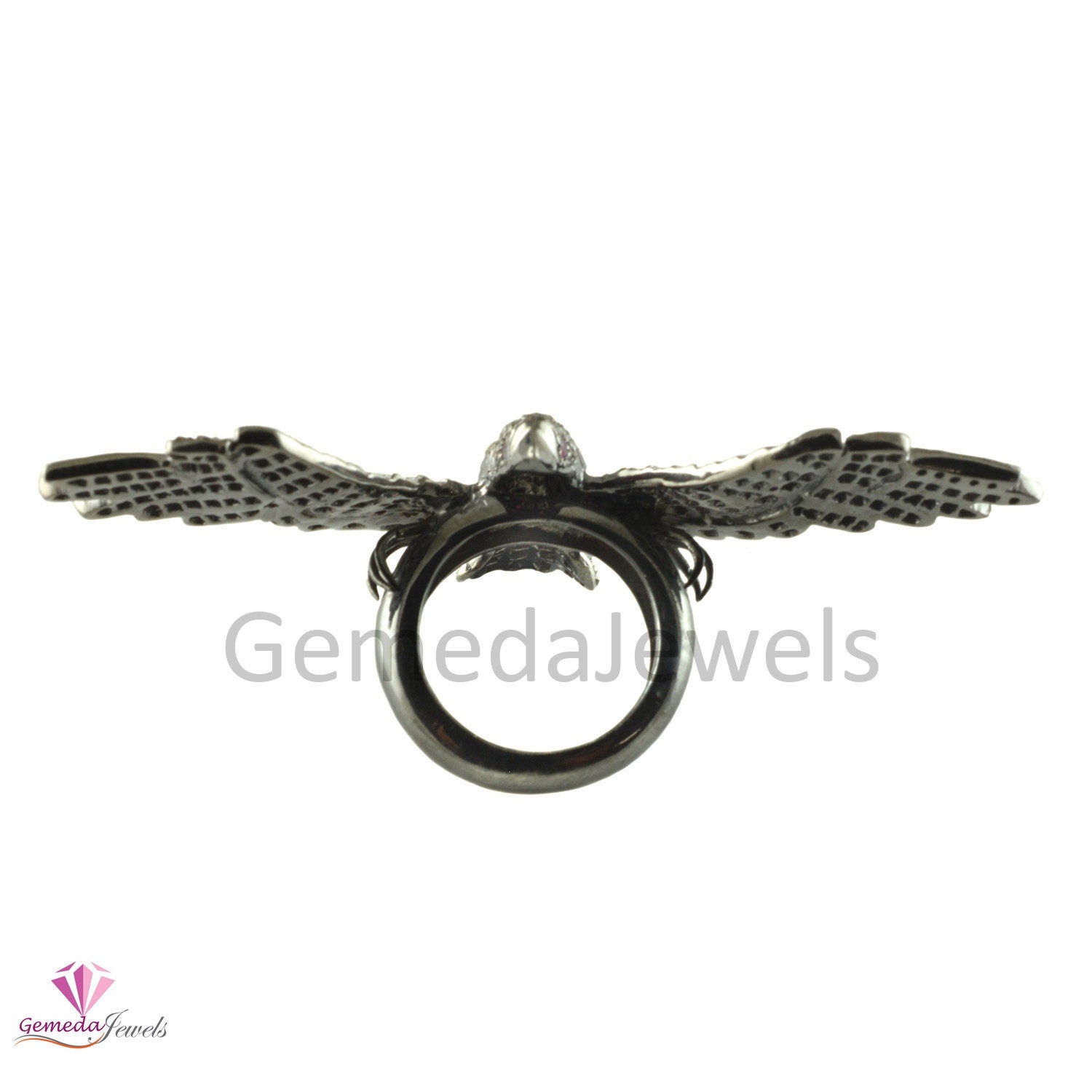 Solid 925 Silver Ring Jewelry, Real Pave Diamond Red Eye Eagle Ring, Diamond Bird Ring, Rhodium Plated Jewelry, Ruby Gemstone Ring, Gifts