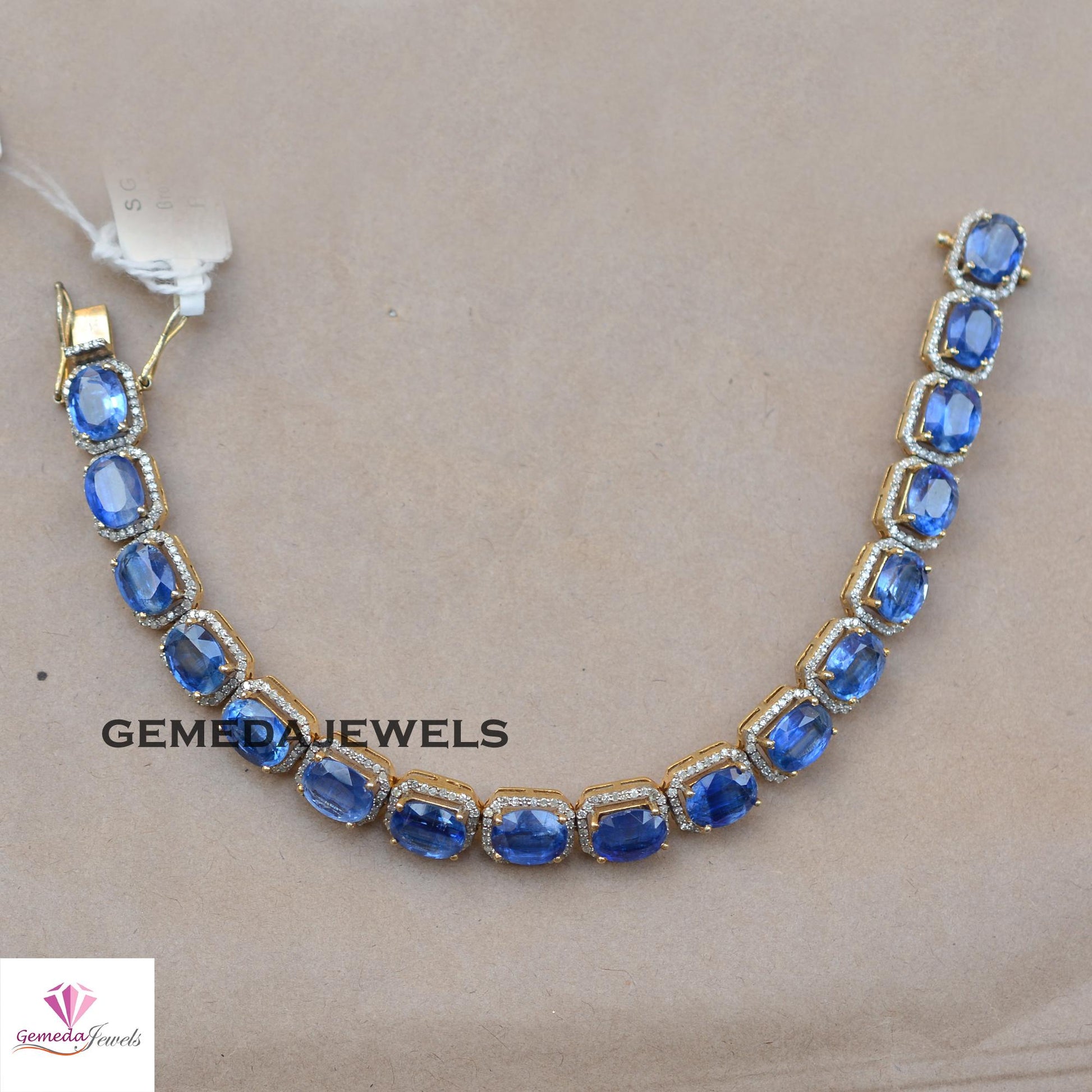 Sparkling Sapphire Bracelet, Solid 925 Silver Jewelry, Pave Diamond Bracelet, Gold Plated Jewelry, Gemstone Bracelet Jewelry, Gift For Her